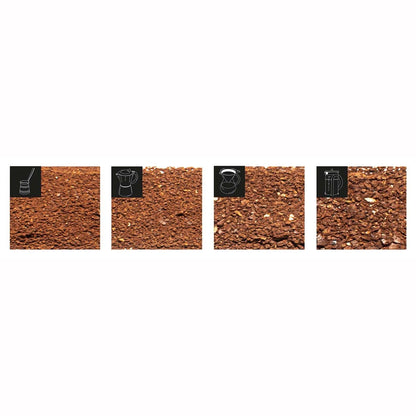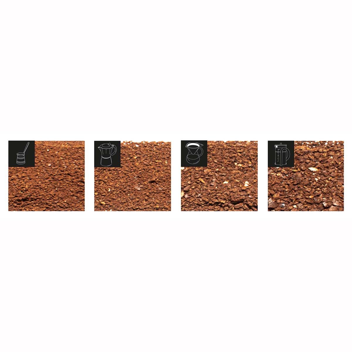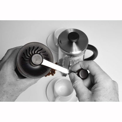 Aerolatte's Precision Burr Coffee Grinder takes guesswork out from the perfect grind size needed for the 4 most popular specialty coffee brewing methods. A turn of the rotary dial to the preset icons adjusts the burr for a perfect grind size every time. It's ideal for making perfect Turkish, espresso, pour-over, and French press coffee. Its large collection base catches ground coffee and detaches for easy access. It includes a small espresso-portion jar that easily inserts when needed. Simply add whole coffee beans into the top of the burr grinder, turn the rotary dial to the correct preset icon to select the desired brewing method, then turn the handle to grind the beans.