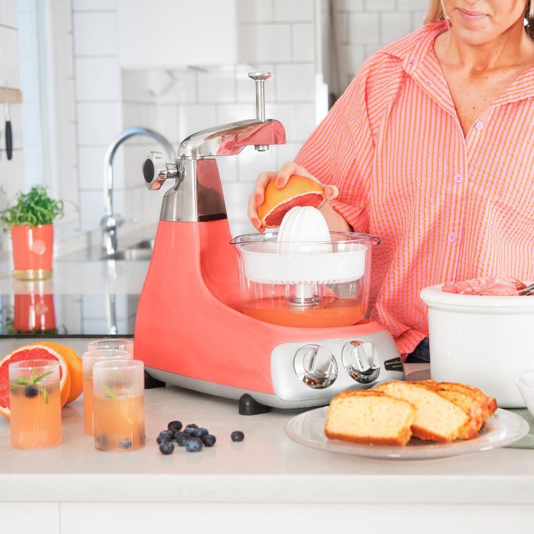 Ankarsrum offers an impressive range of stand mixer attachments that elevate the multifunctionality of our stand mixers, making them essential for every kitchen. Use the pasta roller for scratch-made pasta or the meat grinder for processing meats for mouthwatering burgers, sausages, and more. Other stand mixer accessories include the grain mill for freshly ground flour, a blender for smoothies and soups, and a citrus press for fresh juices. Each attachment enhances your cooking experience.