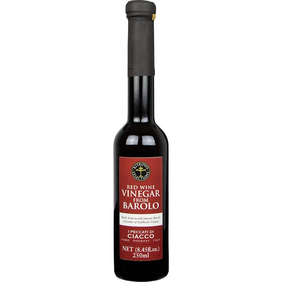 From the heart of Piemonte terroir comes this rich, ruby-colored red wine vinegar. Made from 100% DOCG Barolo Nebbiolo grapes, this wine vinegar becomes a condiment for salads, meat dishes, polenta, and braised meats. Savory and smooth, it will become a go-to item in your kitchen. Actually produced in Modena by an Acetaia that specializes in monovarietal vinegars, voted #1 monovarietal vinegar in Italy by Gambero Rosso.