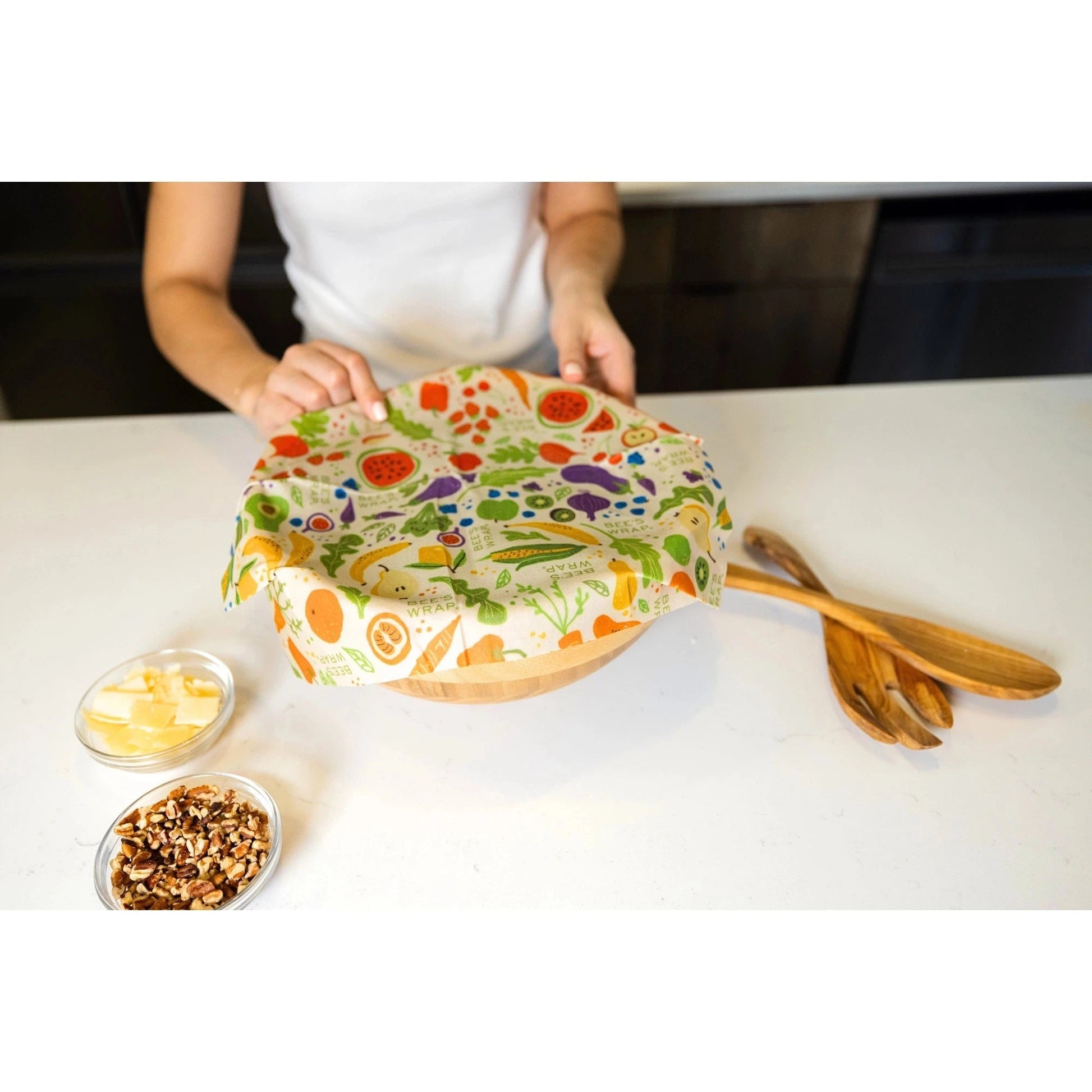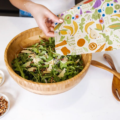 Fresh from the Farmer's Market, to your picnic table, Bee’s Wrap® exclusive new limited edition summer print, designed by Vermont artist Tara Clayton, celebrates the flavors of the farmers market and brings the joy of the summer harvest to you! Our Assorted 3 Pack reusable fabric food storage wrap is made with GOTS Certified Organic Cotton coated with a blend of sustainability-sourced beeswax, organic plant oils, and tree resin offering a flexible wrap to preserve left-overs, produce, cheeses and so much more!