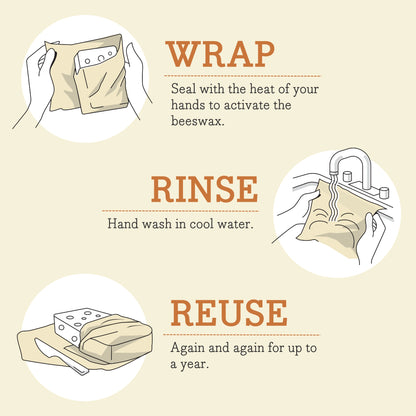 Handmade in Vermont by a Certified B Corporation. Bee's Wrap® is washable, compostable, and reusable for up to a year. Simply wash in cool water with a mild soap and let air dry, avoid exposure to heat. Compostable at the end of its usability, leaving without a trace.