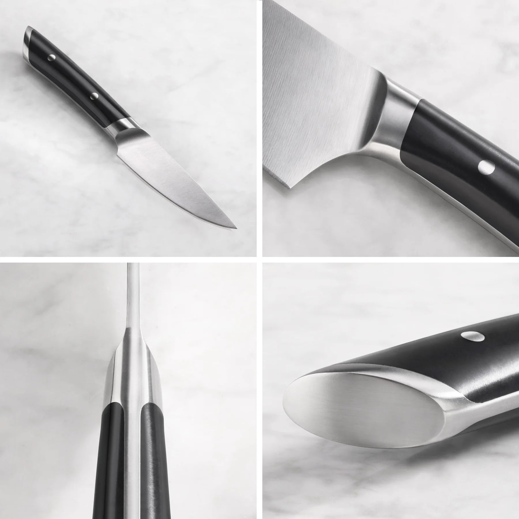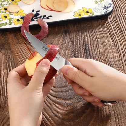 - The 3.5-inch Paring Knife shape is similar to that of the much larger chef’s knife, but the smaller size will be more comfortable for precise prep work that requires increased control. The paring knife is a kitchen essential for tasks such as slicing small fruits, trimming mushrooms, chopping herbs, creating a garnish, or peeling and mincing garlic.