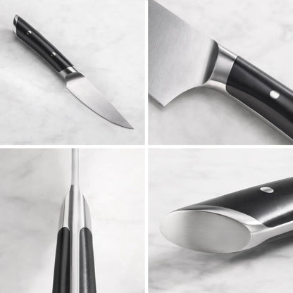 - Slim, ergonomic handles are designed for the most comfortable fit, making each knife feel like an extension of the user's hand.