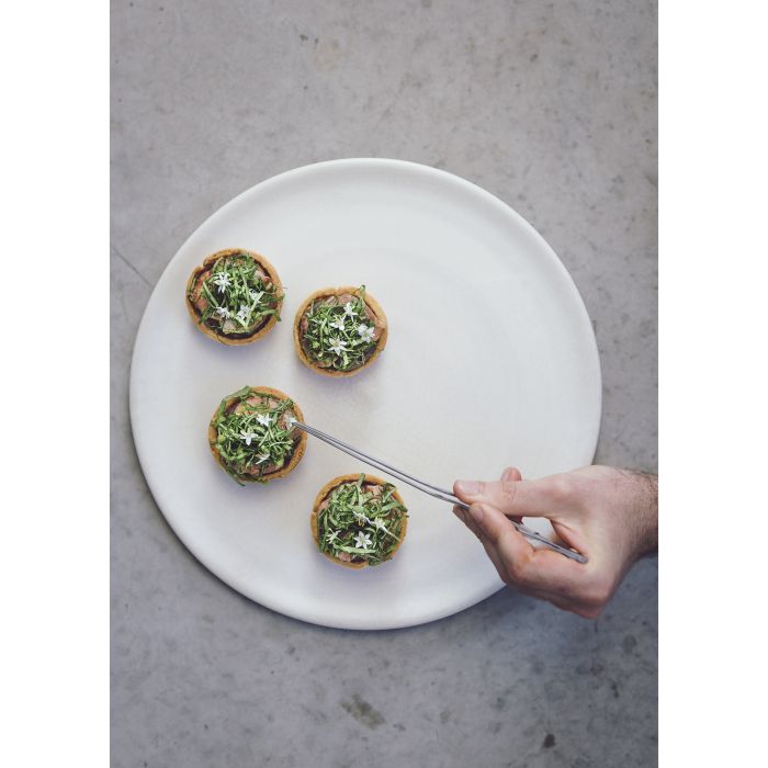 - CatCora Offset Plating Tongs: Plate, garnish, serve, and add delicate finishing touches with precision; perfect for professional and home use