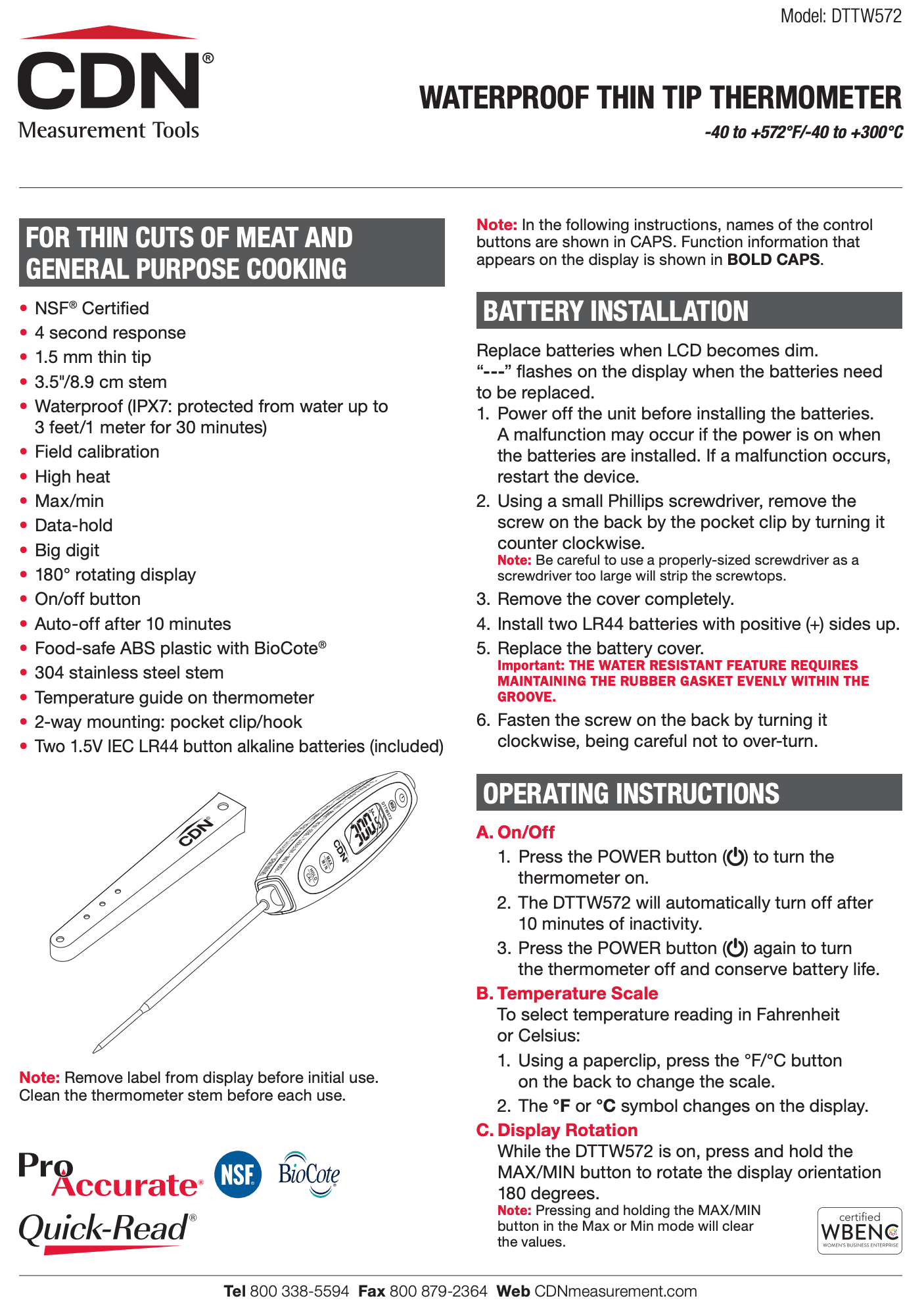 -40 to +572°F/-40 to +300°C - NSF® Certified