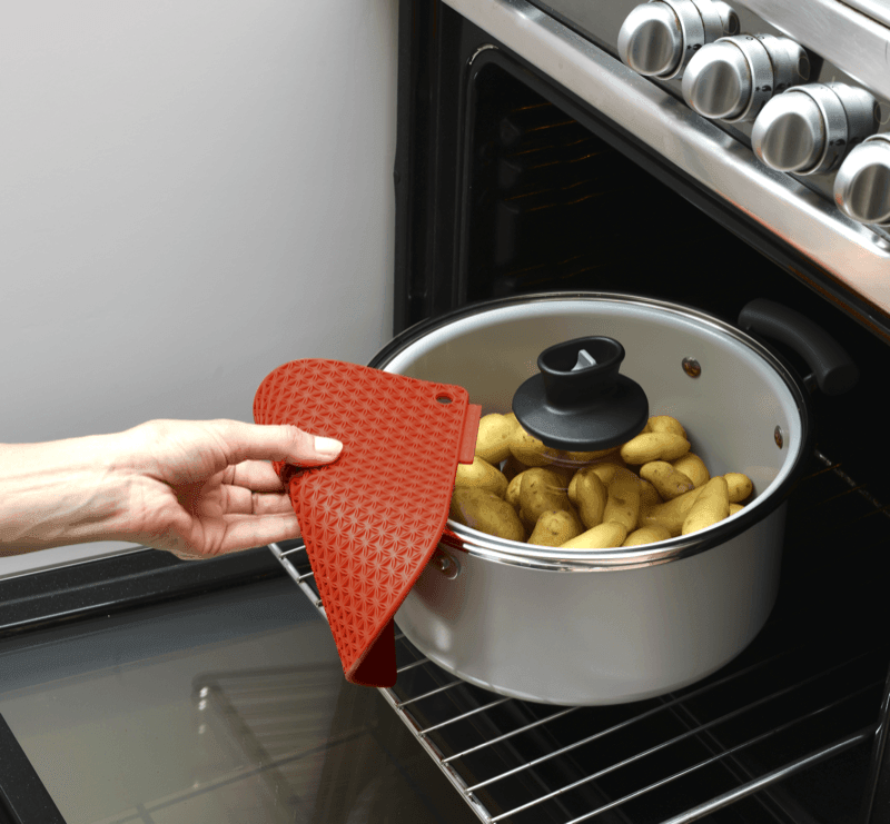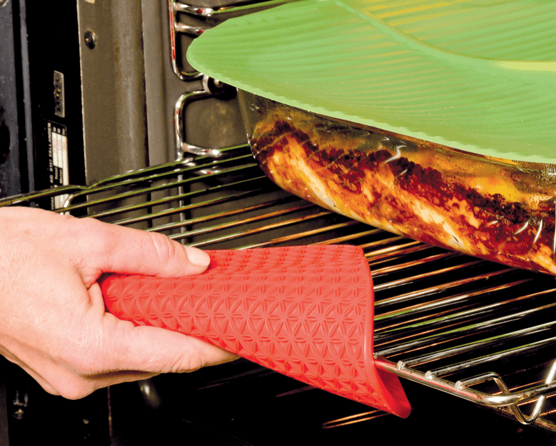 Available in an array of colors to match your decor and personality, protect your fingertips while safely handling hot dishes.