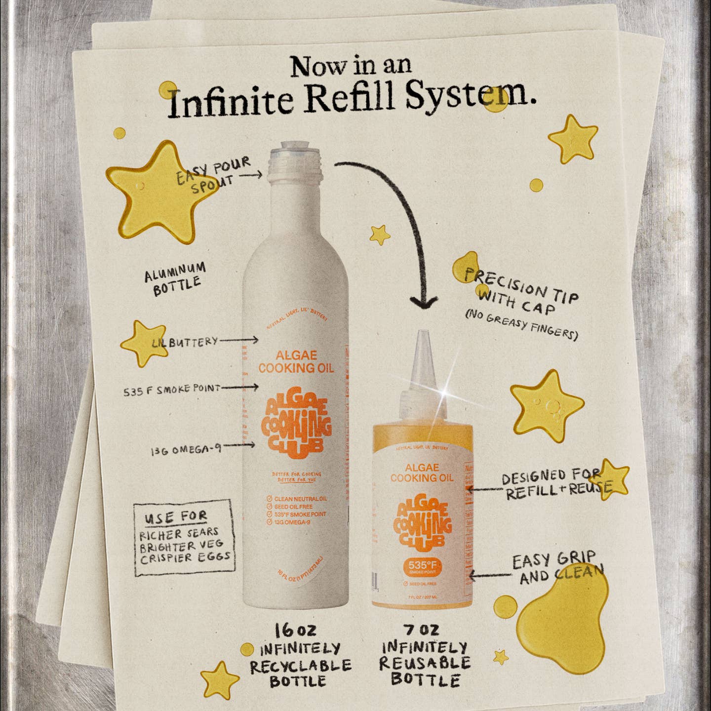 This is our signature algae cooking oil—chef-loved, nutritionist-approved—now in a sleek 7oz squeeze bottle. Reusable. Giftable. Built for precision.