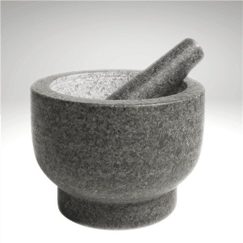 Cut out of one single, solid piece of natural granite. Crushes, grinds, and mixes herbs or spices with ease. 5" tall.
