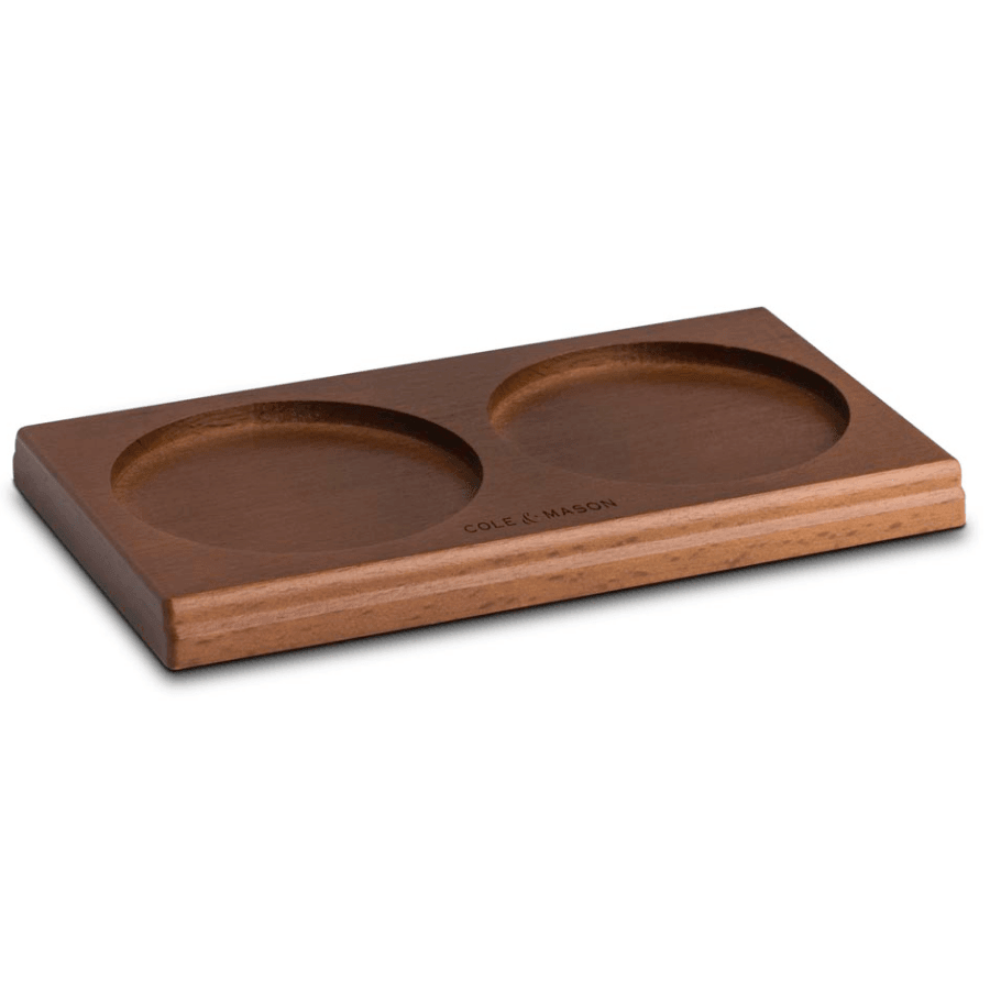 Perfect for preventing mess on any surface, these wood trays are a simple yet stylish. They can be used with a wide variety of Cole & Mason salt and pepper mills or oil and vinegar bottles.