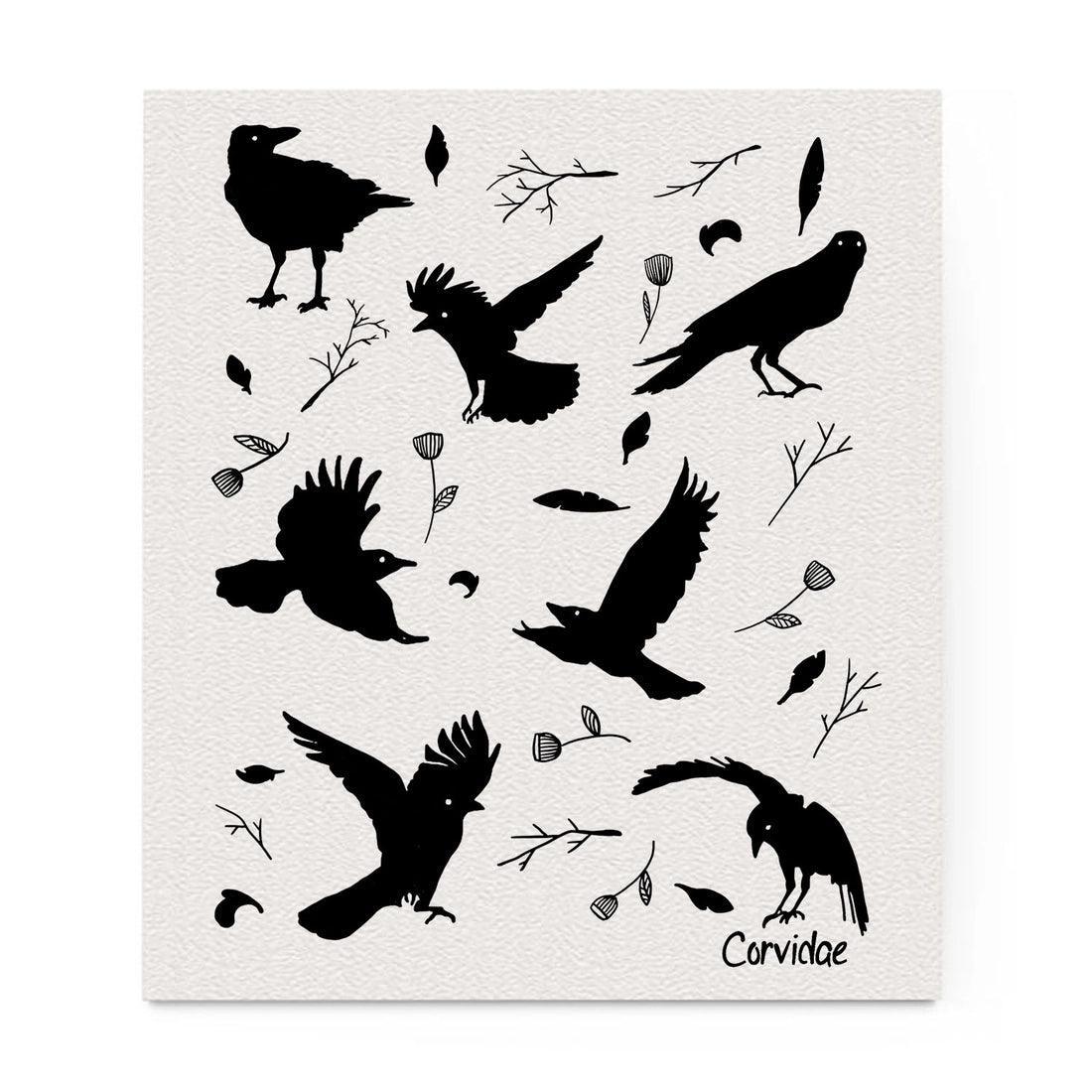 Corvidae Swedish Dishcloth: Crows and Flowers
