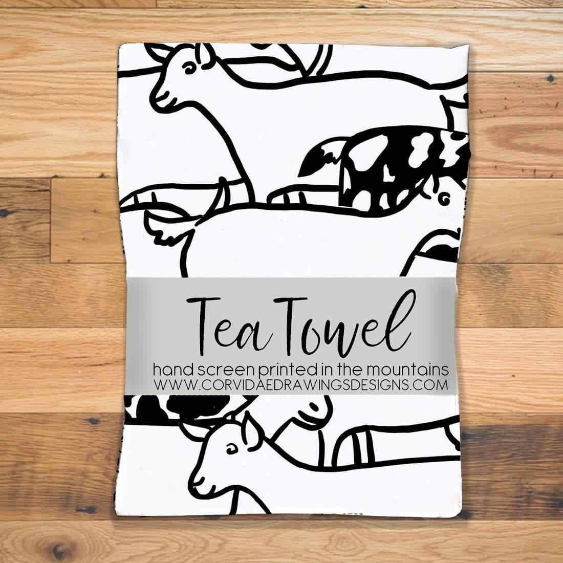 Each towel is printed by hand and may have slight variations that add to the charm and beauty. The handmade nature of the towels assures that each one is individually unique. They are absorbent, lint-free, quick-drying, easy to launder and hardy. 24"x36" / 100% flour sack Cotton / Machine Washable