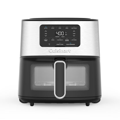 Cook everything from simple snacks to main meals with the versatile Cuisinart® Basket Air Fryer. This countertop cooker lightens up fried foods with fast and even hot-air-powered cooking — using little or no oil — for making healthy meals with the crispy crunch you love. Five popular pre-programmed settings, a toss notification to flip food mid-way through cooking, and convenient viewing window make it easy to air fry, roast, bake, broil, and warm food with delicious results every time. Lighten up your menu with the convenient air fryer that does more for mealtime!