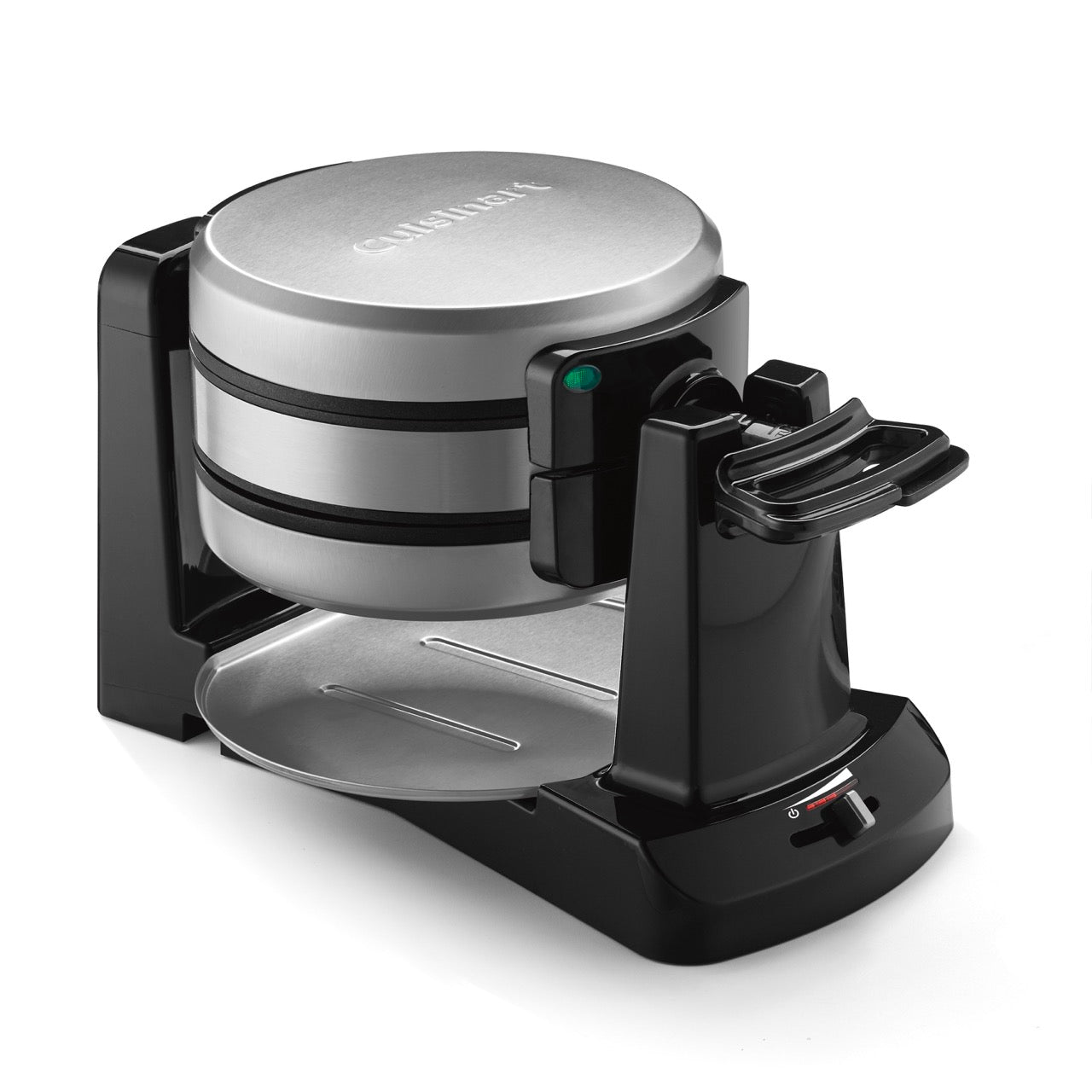 Cooking two Belgian waffles at a time to perfection is easy with Cuisinart®'s Double Belgian Waffle Maker. The distinctive rotary feature flips 180 degrees to evenly cook them inside and out. Powered by 1400 watts, this innovative kitchen essential cooks Belgian waffles in minutes, with 5 shade settings to bake them according to preference, from light and fluffy to brown and crispy. To prevent over- or under-cooking, a ready indicator light and beeping alert announce when waffles are ready. Nonstick plates ensure flawlessly formed, deep pocketed Belgian waffles release easily onto the plate, ready for a wide variety of toppings, from fruits and meats to jams and whipped cream. Durable, brushed stainless steel housing adds a sleek, modern touch to any kitchen and wipes clean in seconds.