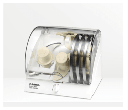 For use with all Cuisinart ® Classic and Premier Series 7-Cup, 9-Cup, 11-Cup and 14-Cup Food Processor accessories Safely stores chopping and dough blades, disc stem and 3 discs Tamper-resistant lock with transparent cover Easy-to-clean, high-impact plastic Limited 1-year warranty
