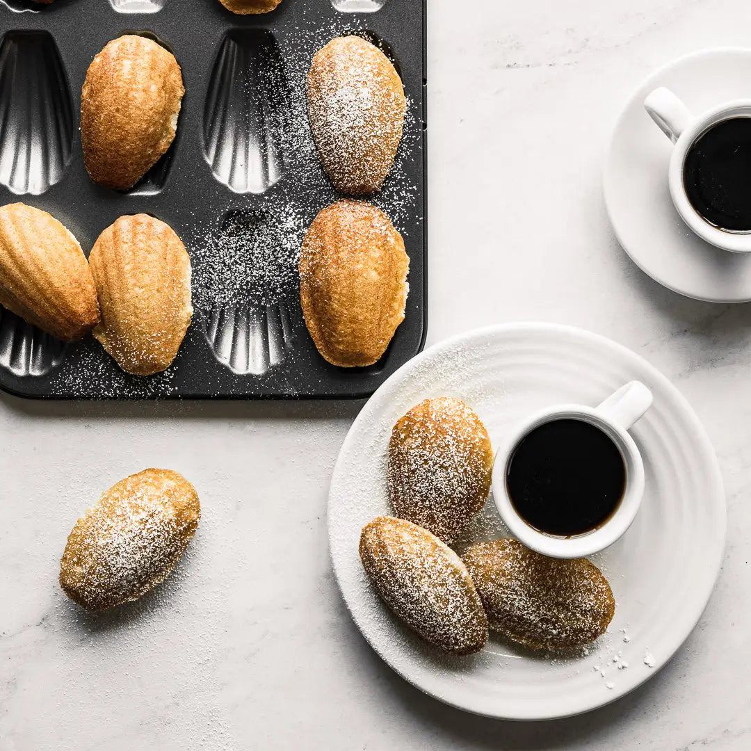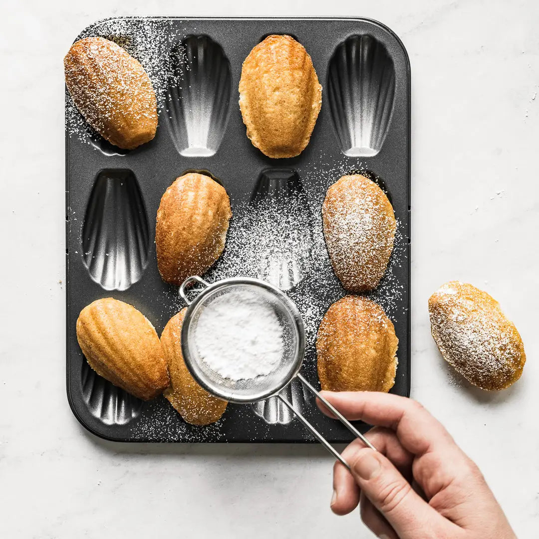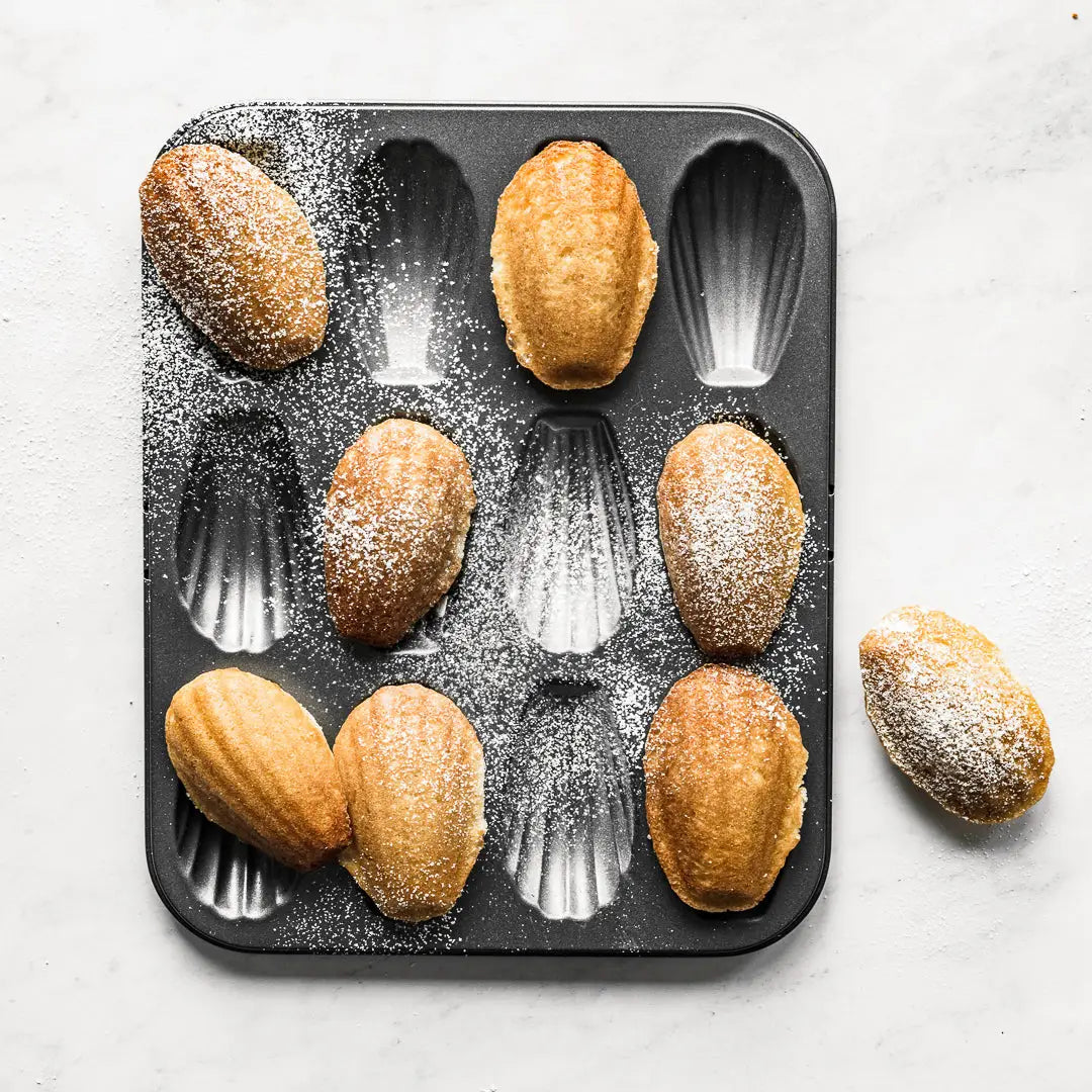 This madeleine mold made of high-quality, non-toxic coated steel is a staple for all bakers. You can bake up to 12 regular size madeleines at the same time. The optimized heat conduction will bake a perfectly crispy and golden-brown pastry, while keeping its heart soft and moist.