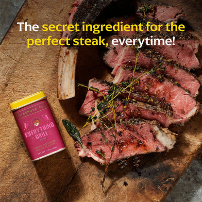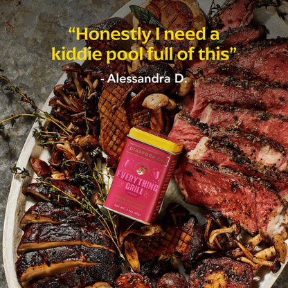 Easily makes the most delicious steak of your life, but that's just beginning. This punchy, dynamic blend has Aranya Black Pepper, Sirārakhong Hāthei Chillies, and Pahadi Pink Garlic for smoky umami; Hariyali Fennel and Wild Ajwain for herbacious depth; and just enough salt to bring every flavor into focus. Even if you’re not a meat eater, we implore you to try this masala — it might become your go-to for veggies, eggs, and more!