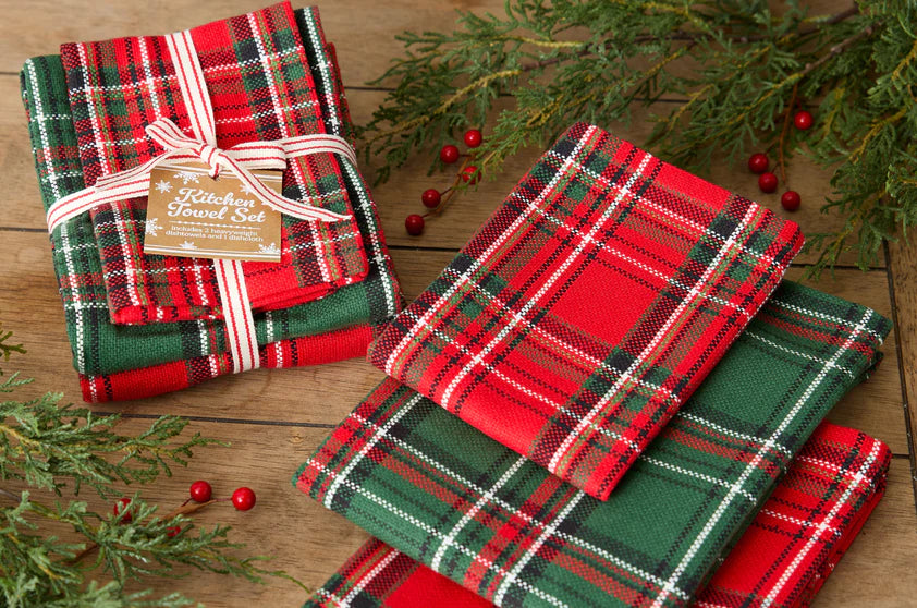 DII Heavyweight Kitchen Towel Set: Boughs of Holly Plaid
