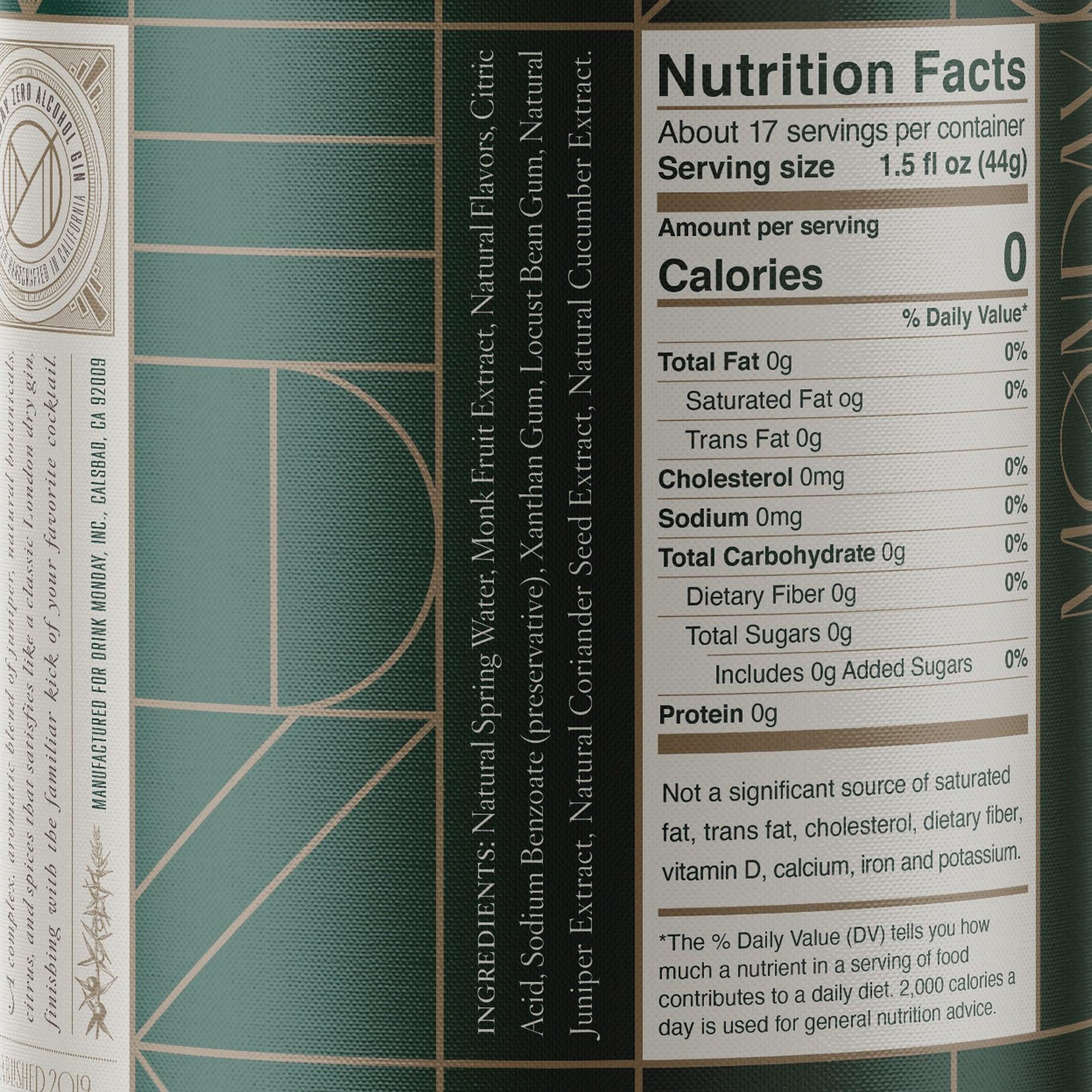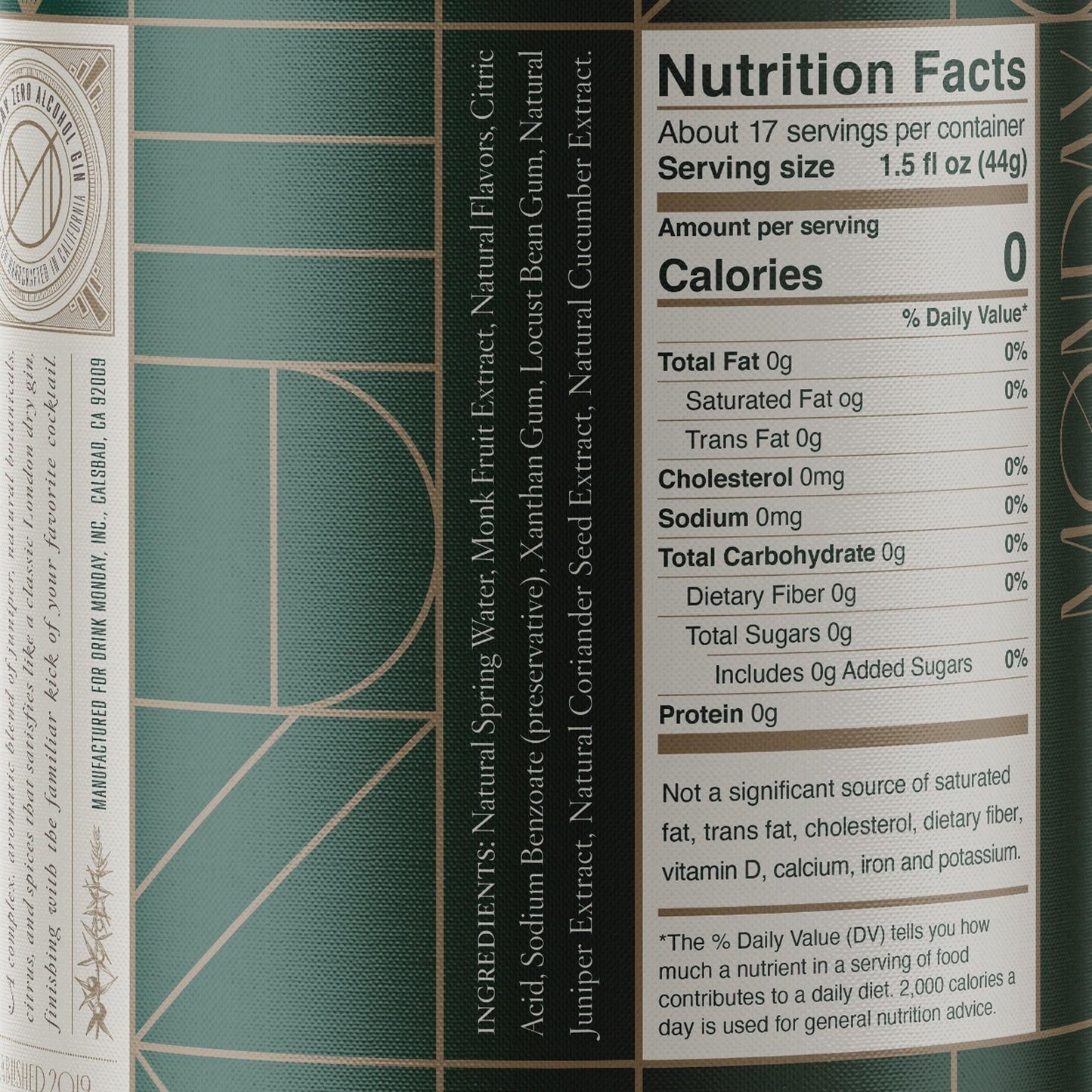 Monday Gin is a bold non-alcoholic spirit made for the spirited ones. Our complex blend of juniper and natural botanicals allows alcohol avoiders to enjoy flavorful cocktails, socialize without stress, and wake-up hangover free. Support the growing movement that refuses to choose between good health and great taste with Monday Gin.