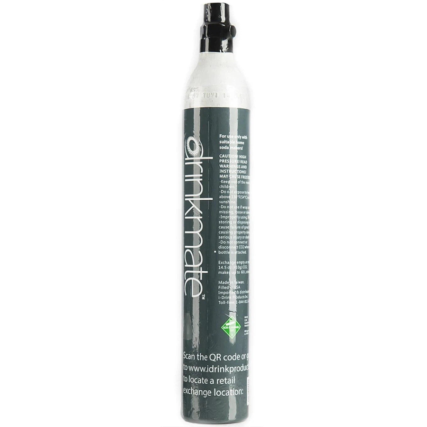 Drinkmate 60L (14.5 oz) refill cylinders come filled with food grade CO2. Made of durable aluminum to US DOT standards, they are also compatible with SodaStream (except pink label quick-connect machines) and other brands of soda makers. Each cylinder will make up to 60 liters of sparkling drinks, depending on the amount of carbonation desired.