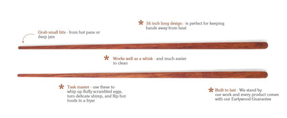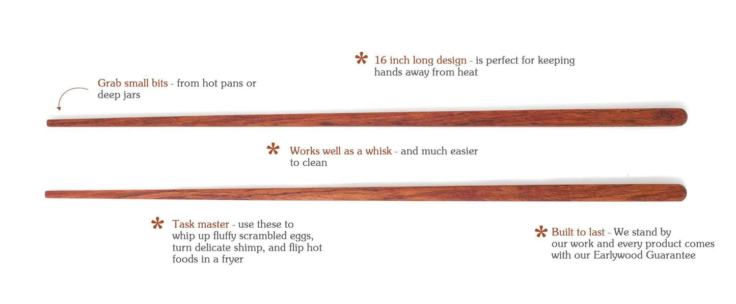 At 16" long, they keep your hands far from the heat, and let you turn small foods like shrimp one a time with delicate ease. Made from Jatoba these will be sure to add some fun to your culinary creations.