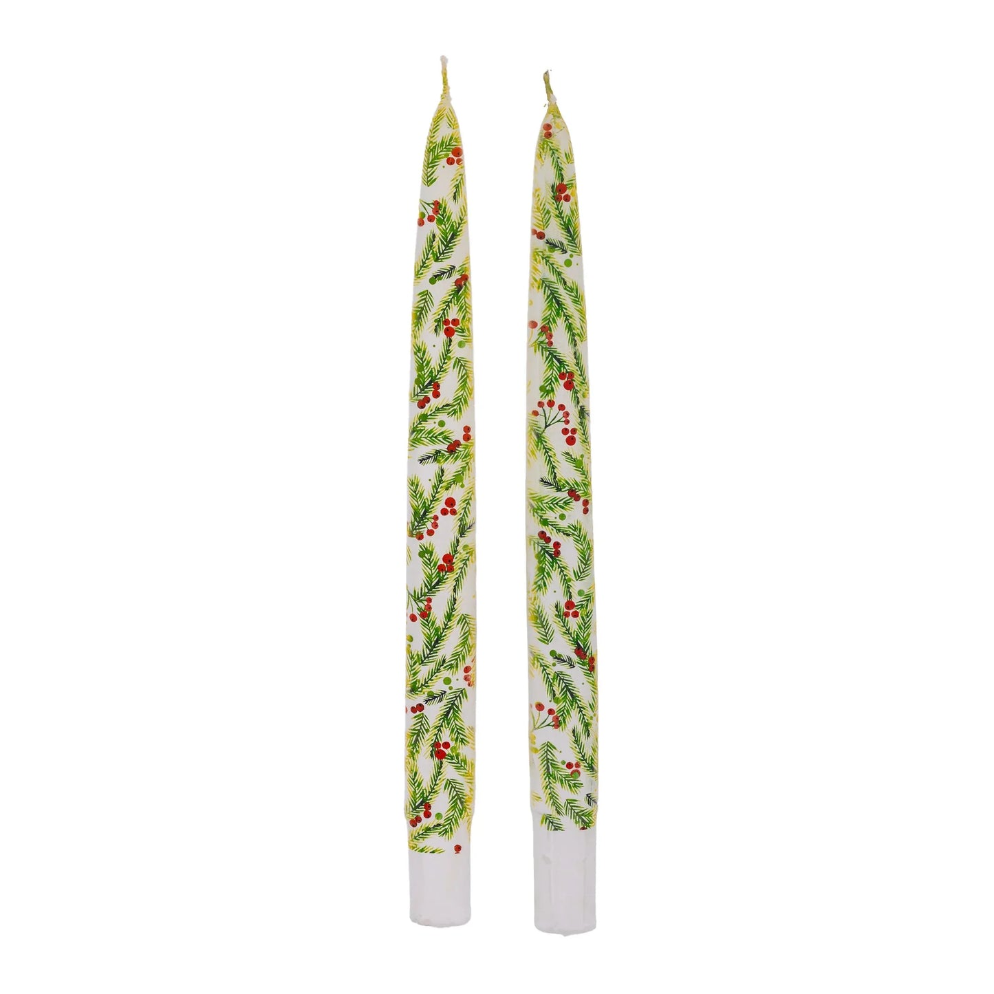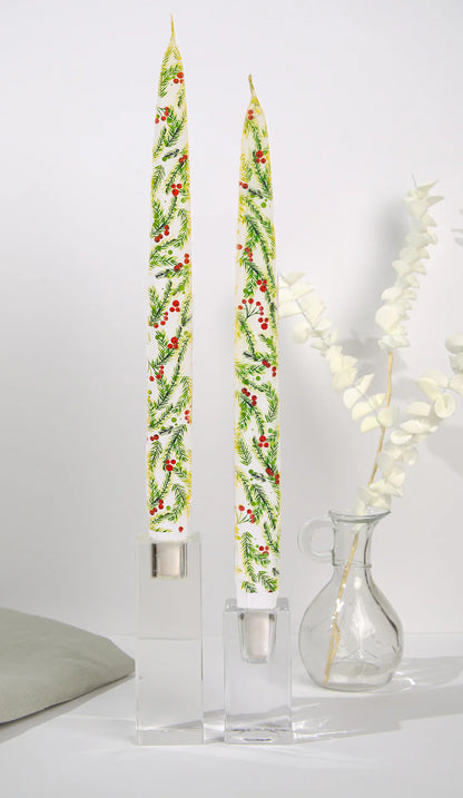 Flatyz Tapers (Set of 2): Christmas Pine Needles and Berries