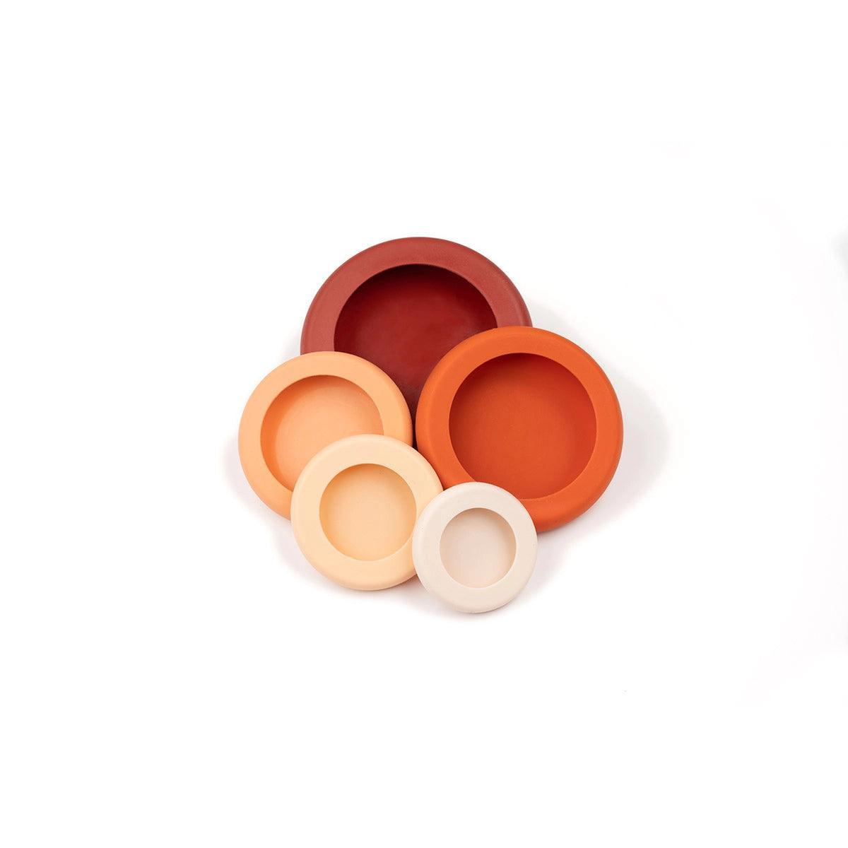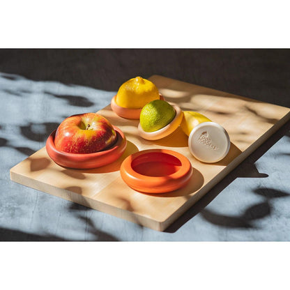 Food Huggers keep your fruits and veggies fresh longer. Our set of 5 includes all 5 sizes of Food Huggers, XL, L, M, S and Mini. Also great for covering jars, open cans, and other small containers. Nests compactly for space-saving storage and organization. Getting the most out of your fresh produce is health-smart, cash-smart, and good for the planet.