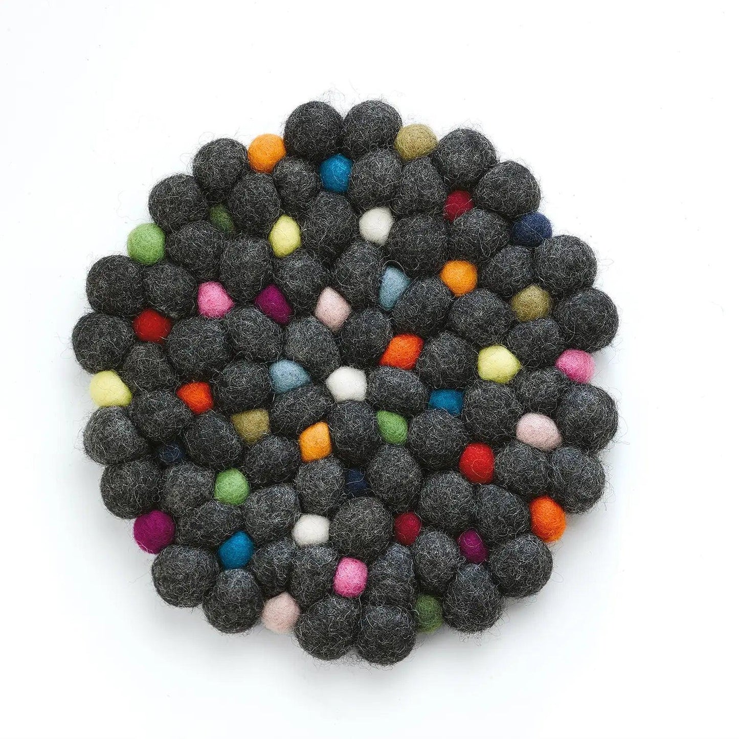 ■ Lots and lots of small wool balls are tightly sewn together to form the most decorative trivets yet
