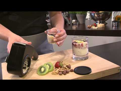 Thanks to its two interchangeable drums, the rotary grater is suited for making shavings and fine crumbs. Just put hard cheese, nuts, chocolate or garlic into the inlet funnel, turn the handle – and done! The sophisticated engineering of the rotary grater allows the almost complete utilization of the material you want to grate while keeping your hands safely away from it and guaranteeing odor-free and clean working. And you are sure to be able to interchange the drums with a few movements. The secret is the sharpness of the grating drums, which it owes to the Laser Cut Technique.