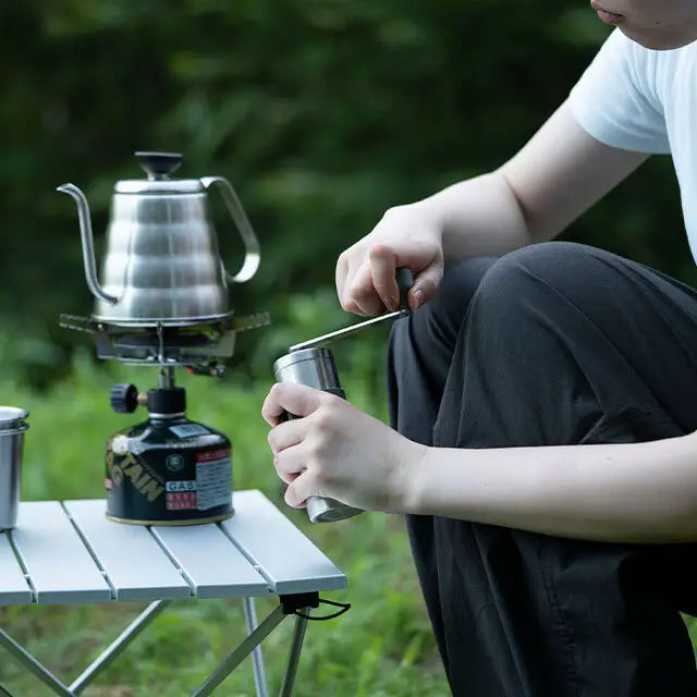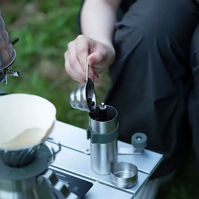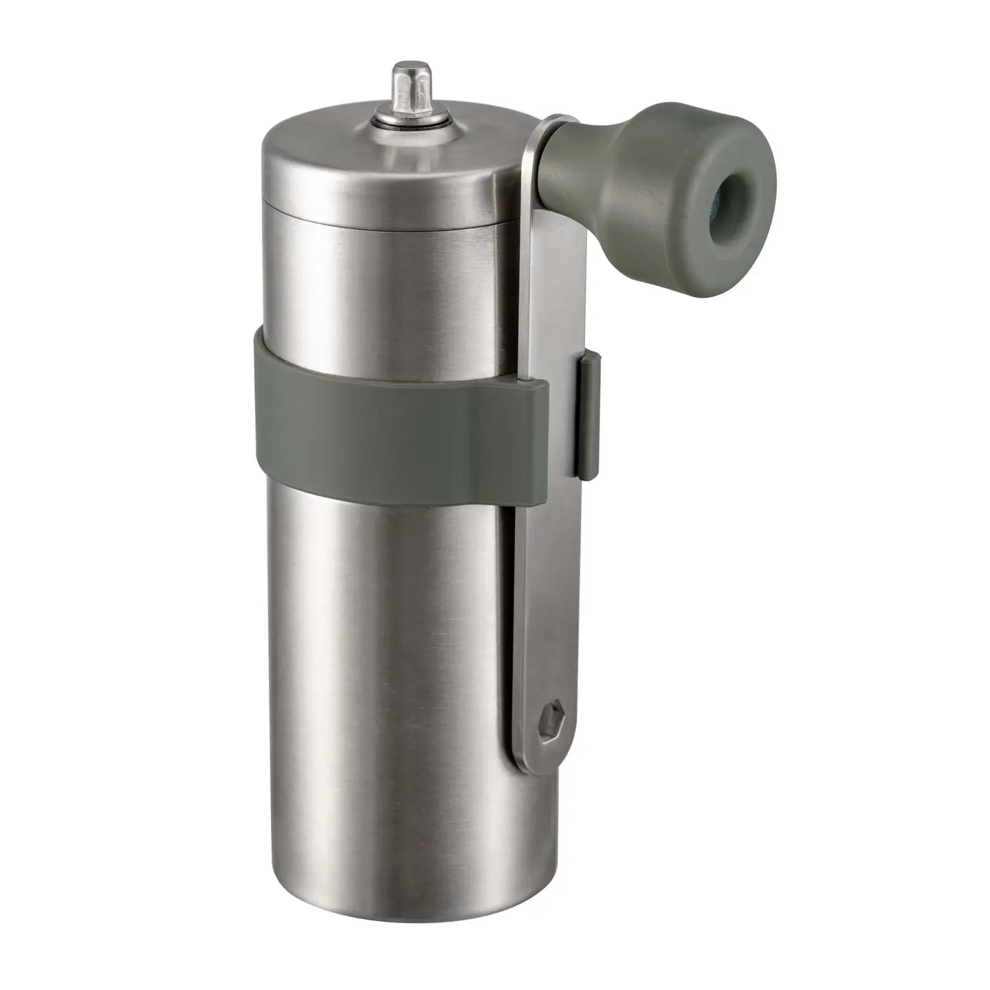 Perfect for travel, this compact grinder boasts a sturdy stainless steel body that's easy to pack away. Its detachable handle can be stored on the silicone band for added convenience, making it incredibly portable. Featuring a quick adjustment screw, you can easily manipulate the grind size on the fly.