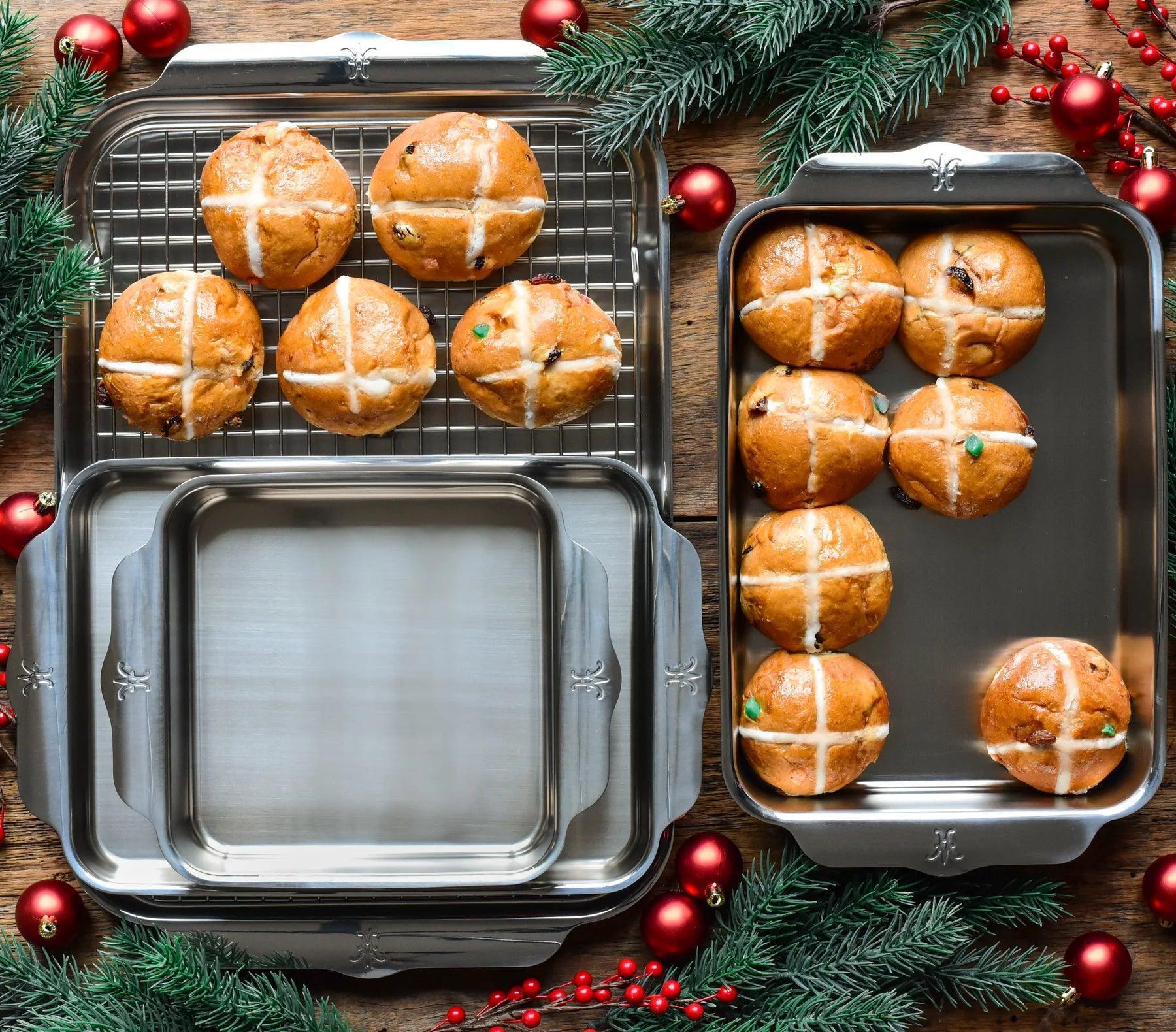 This 12" x 15" sheet pan is perfect for baking mid-size portions of decadent treats and savory entrees for a lifetime of baking and oven-roasting.