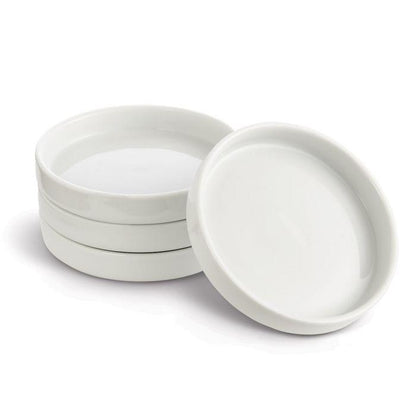 - Made from fine white porcelain; scratch-free glaze; heat safe to 180-degrees Fahrenheit; set of 4; each measures 4 x 0.79-inches and holds 2.4-ounces