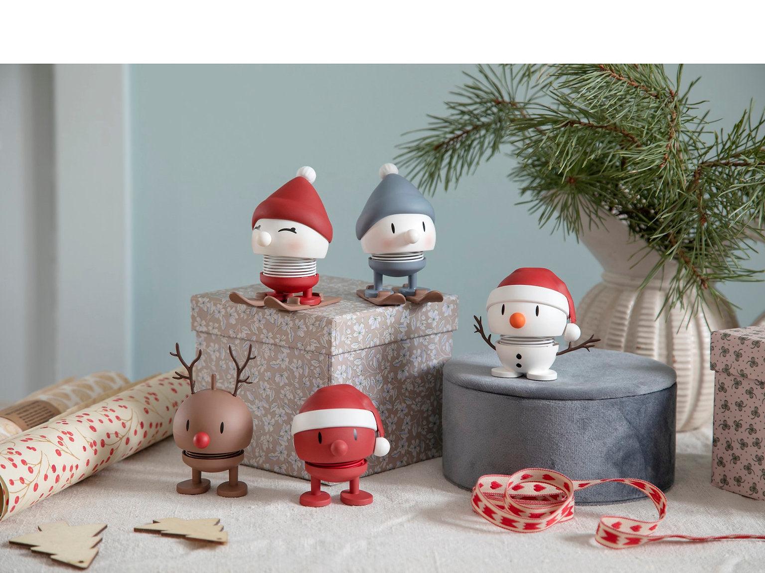 Give the red-cheeked skiing hoptimist a little nudge and watch him jump for joy over the sparkling white snow on the mountain. Skiing Bumble is ready with his blue top hat - both excited and proud - ready for adventure in the winter landscape. The skis can be put on and taken off.