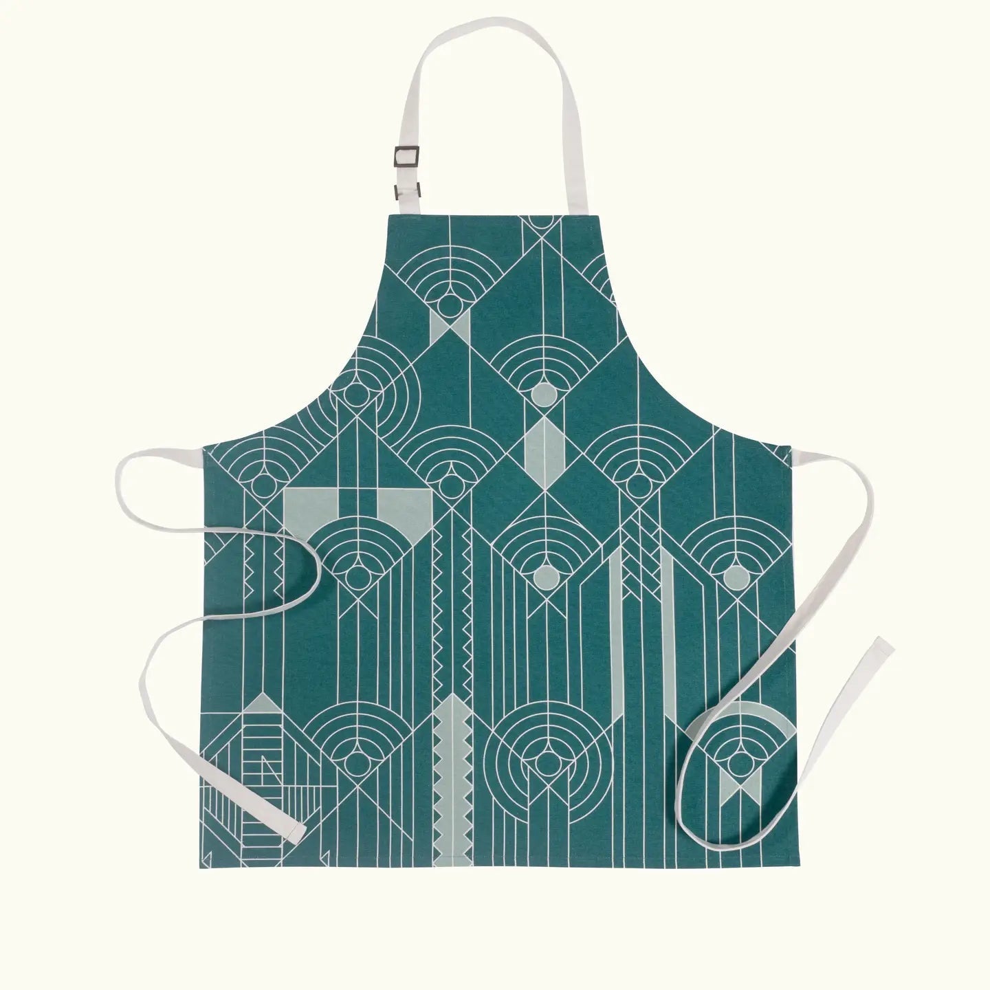 These 100% cotton printed aprons have beautiful and elegant printed designs inspired by the work of iconic architect Frank Lloyd Wright. This collection modernizes some of Frank Lloyd Wright's quintessential designs, bringing his celebrated compositions, and KAF Home's textile expertise, into today's home. Generously sized at 32" x 28". A portion of the sales of this product supports the conservation and education programs of the Frank Lloyd Wright Foundation. 32" x 28" Size Machine wash cold with like colors. Dry promptly