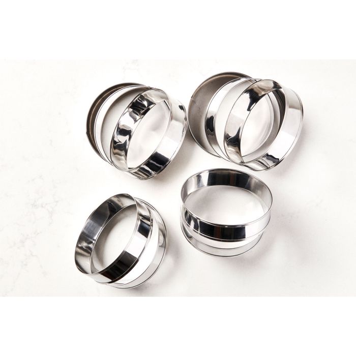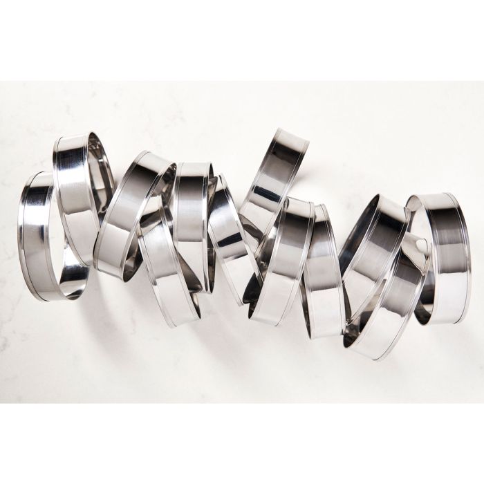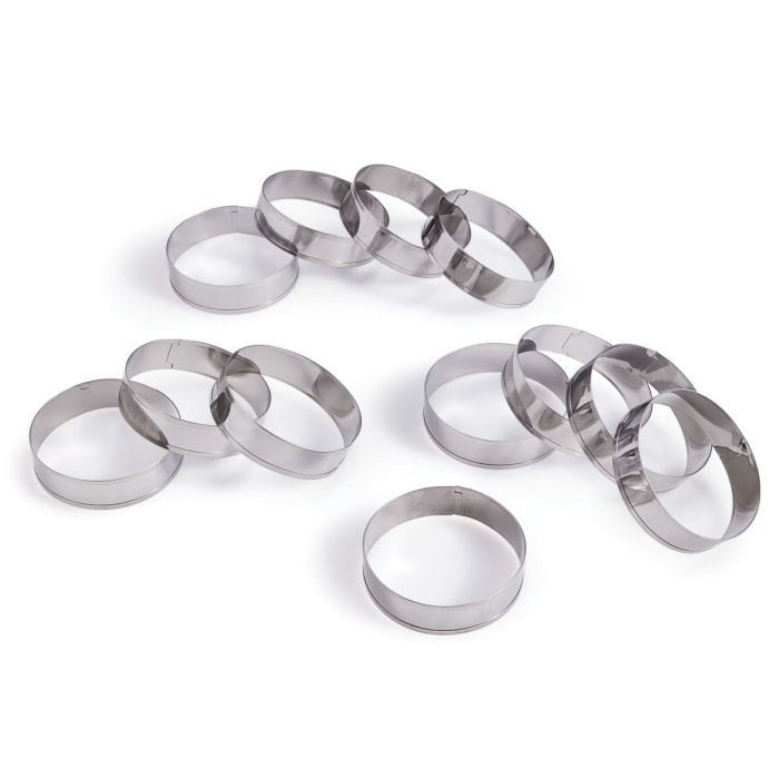 - Made from stainless steel; set of 12; each ring measures 3.74-inch diameter x 1-inch tall