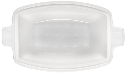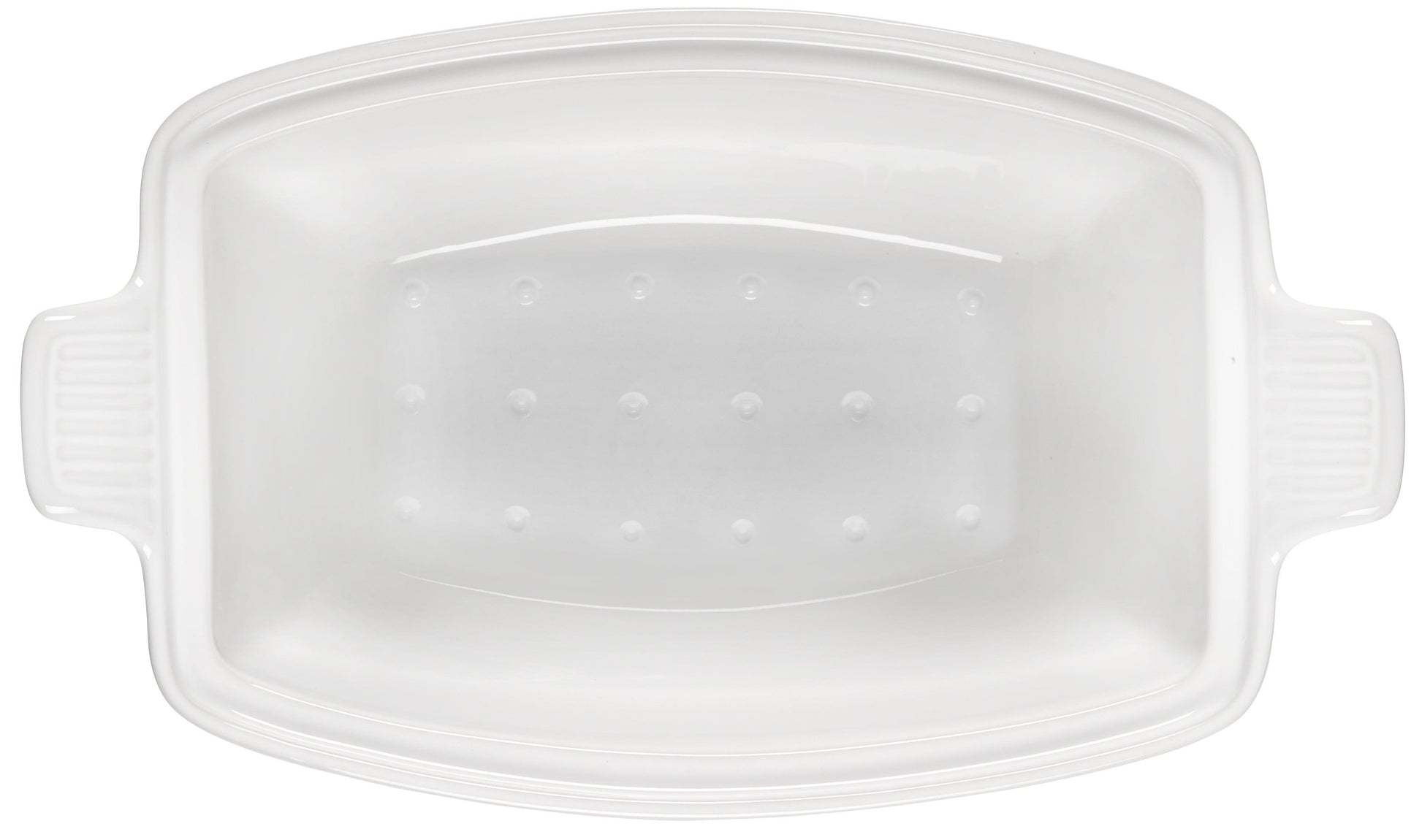 The generous capacity and domed lid of the Heritage Deep Covered Rectangular Baker is ideally designed for roasting everything from whole chickens and lamb shanks to beef and pork roasts. With deep sidewalls, it also has ample space for layered bubbling casseroles, rich desserts, marinating meats and storing leftovers. The stoneware lid locks in moisture and heat while baking to keep food tender and juicy, while the iconic heritage scalloped handles make it easy to transport dishes from fridge to oven to table for serving. Crafted from premium stoneware to ensure food is cooked to perfection, the baking dish features a colorful glaze that is virtually nonstick for easy cleanup.
