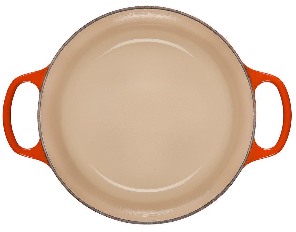 - Light colored smooth interior enamel allows easy monitoring of cooking progress