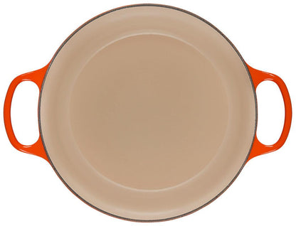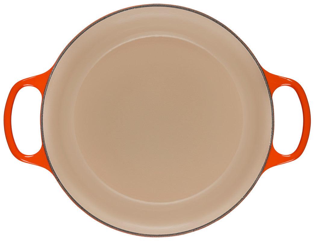 - Light colored smooth interior enamel allows easy monitoring of cooking progress