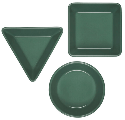Set includes one of each: 11 fluid-ounce Square, 9 1/2 fluid-ounce Round and 7 fluid-ounce Triangle