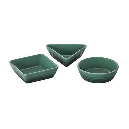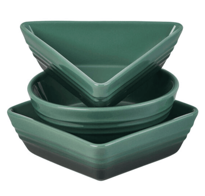 The Set of 3 Tapas Dishes are perfectly sized for serving hot and cold appetizers, as well as dips, desserts, jams, nuts and candies. They’re also versatile for prepping and storing ingredients as you cook, or use them as a catch-all or ring holder in the kitchen. Crafted from premium stoneware, the dishes easily transition from oven or fridge to table and are finished with a vibrant glaze that is virtually nonstick for easy cleanup.