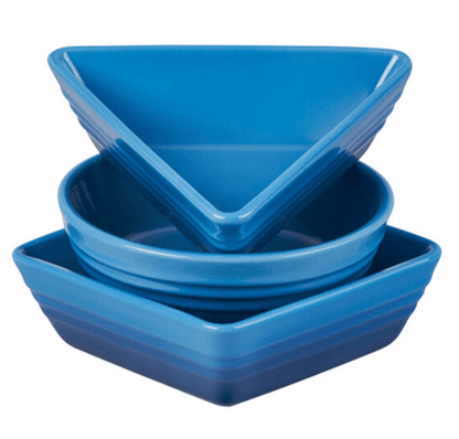 The Set of 3 Tapas Dishes are perfectly sized for serving hot and cold appetizers, as well as dips, desserts, jams, nuts and candies. They’re also versatile for prepping and storing ingredients as you cook, or use them as a catch-all or ring holder in the kitchen. Crafted from premium stoneware, the dishes easily transition from oven or fridge to table and are finished with a vibrant glaze that is virtually nonstick for easy cleanup.