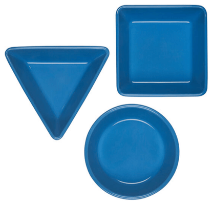 Set includes one of each: 11 fluid-ounce Square, 9 1/2 fluid-ounce Round and 7 fluid-ounce Triangle