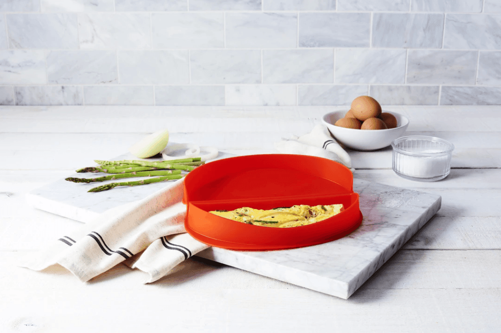 You don’t feel like cooking dinner? Make spongy omelettes with all sorts of fillings in just a matter of minutes. The omelette mold allows you to cook oil-free, healthy and tasty meals in very little time and with no mess.