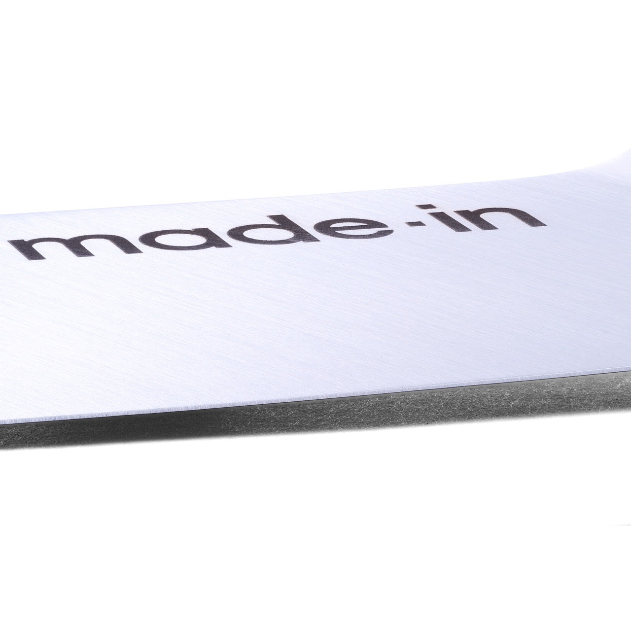 Instead of being cheaply welded together, all of Made In's Knives are full tang and fully forged, meaning they are crafted from a single rod of stainless steel that extends from tip to handle—resulting in sharper, perfectly balanced blades.
