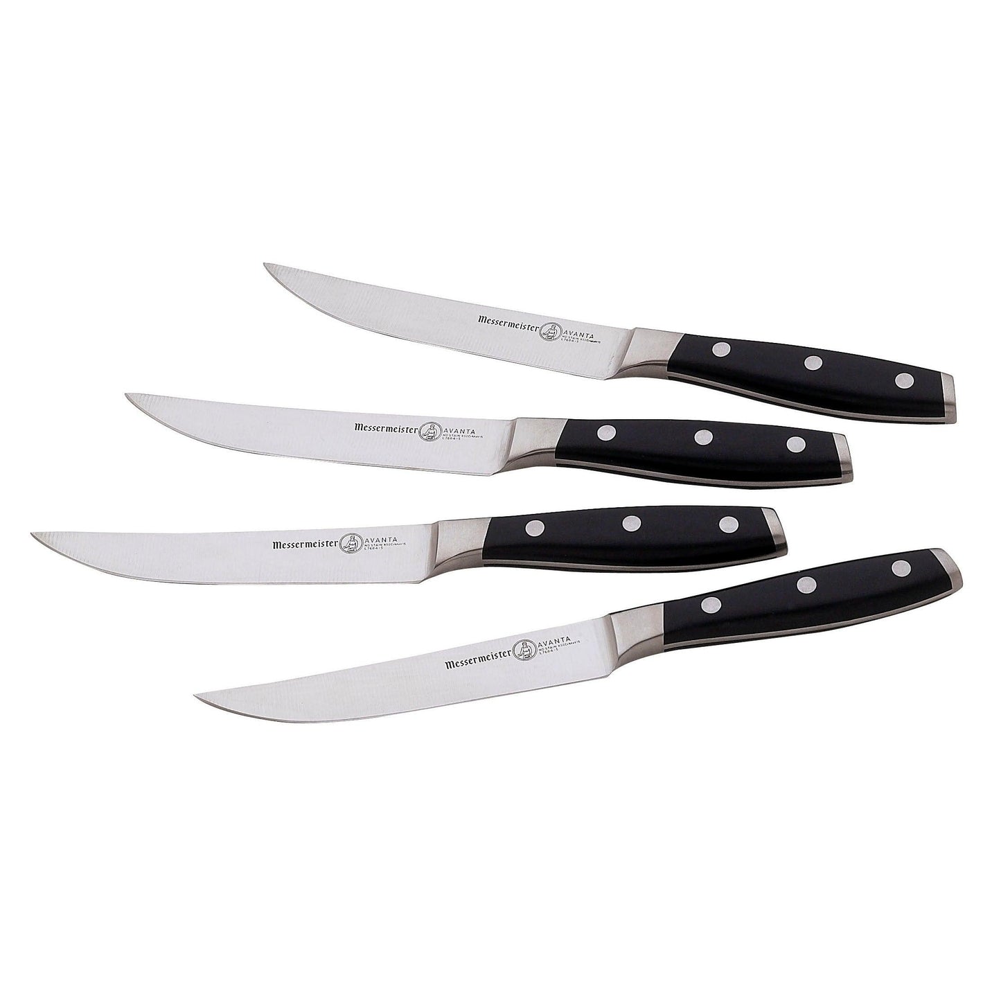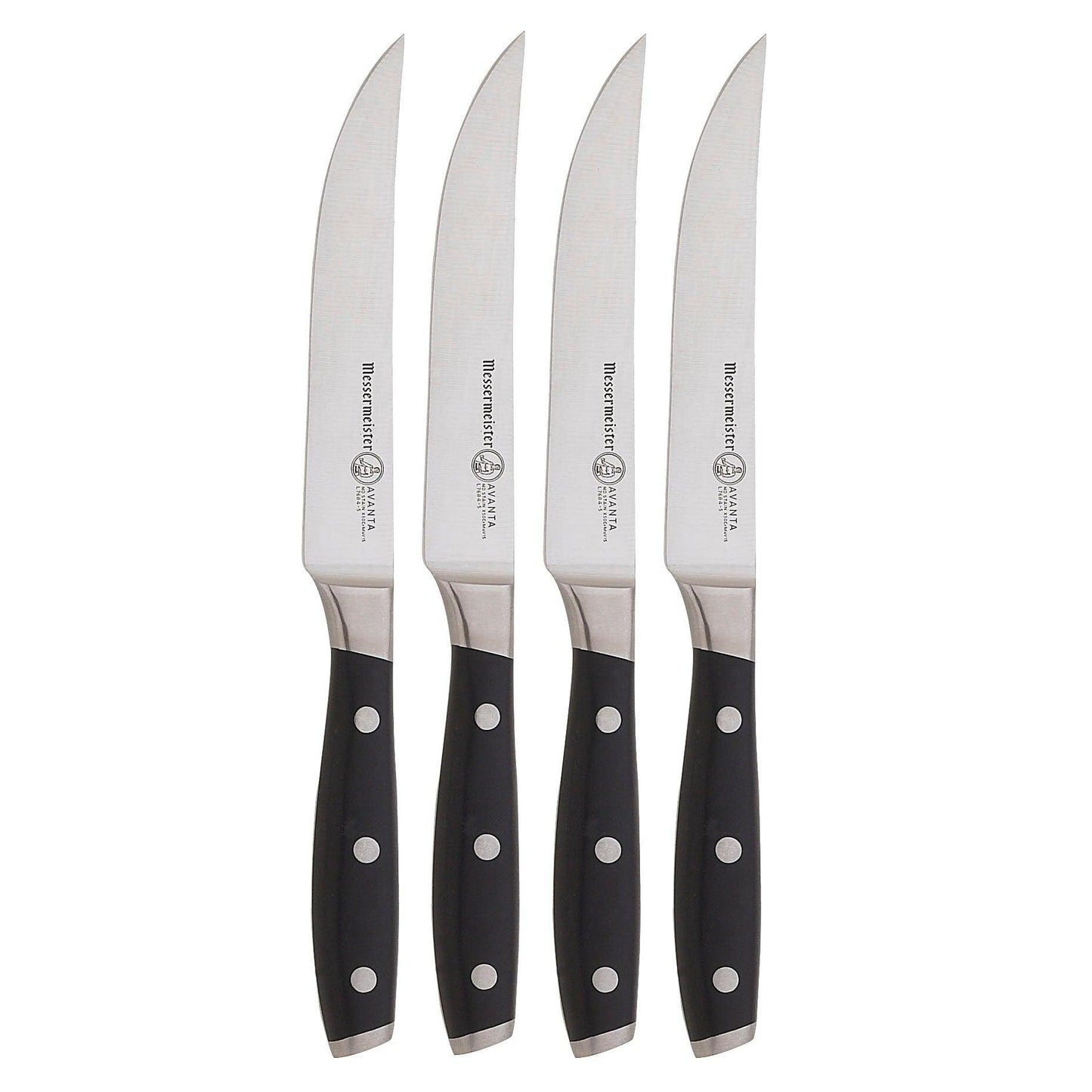 The Avanta Black POM Steak Knife is high quality and affordable. These blades are crafted from high quality German steel, which gives you a knife that is sharp, rust resistant, and is easy to maintain. The bolster along with the full tang gives the knives great balance and heft. The 5” blade with a curved tip enables effortless slicing through steaks.