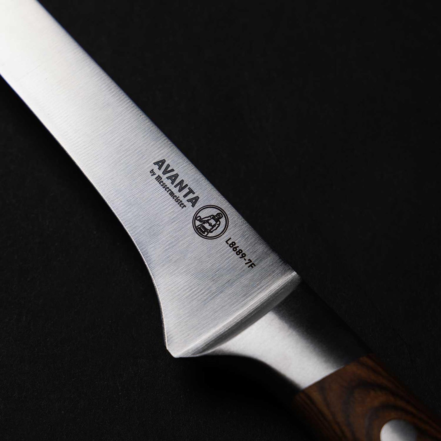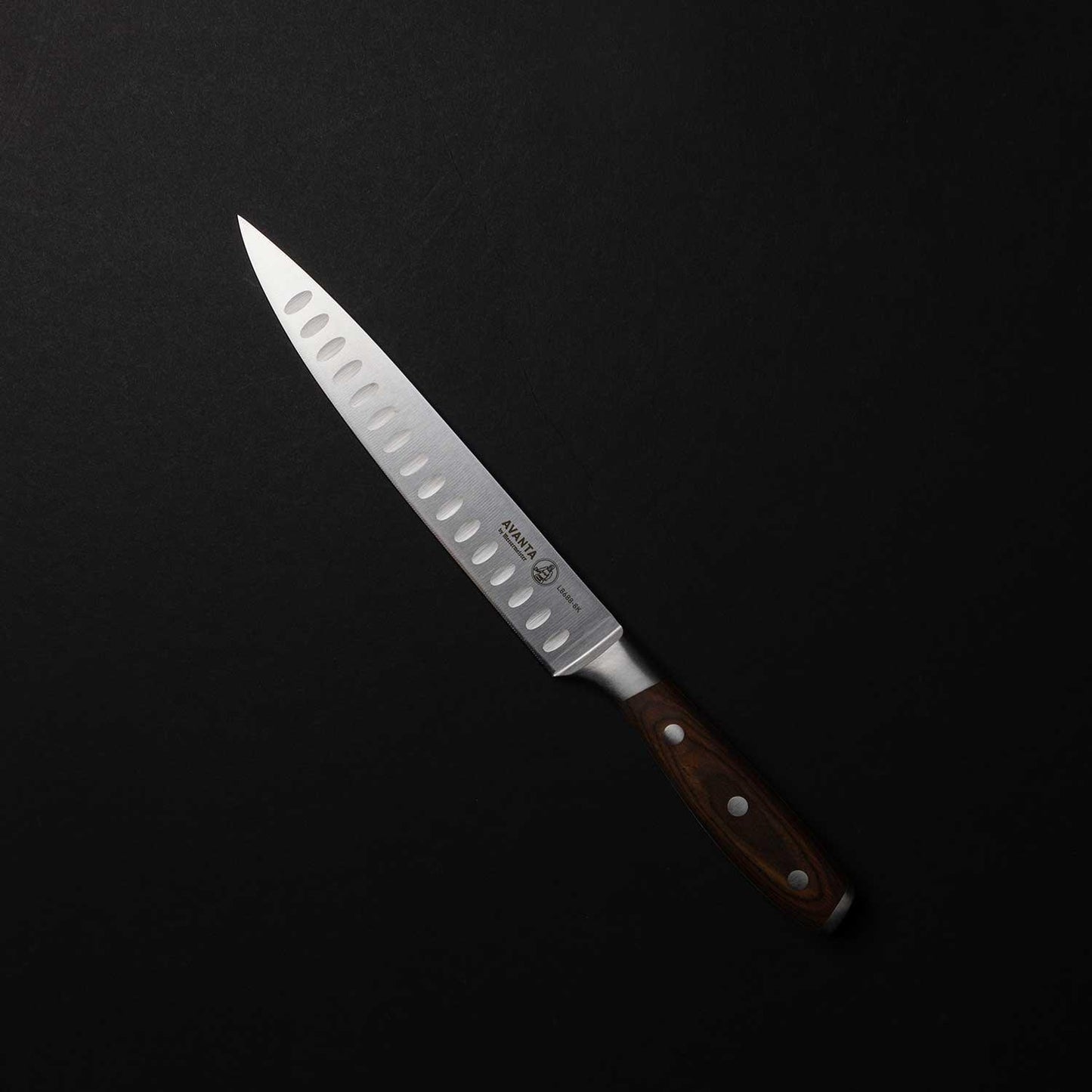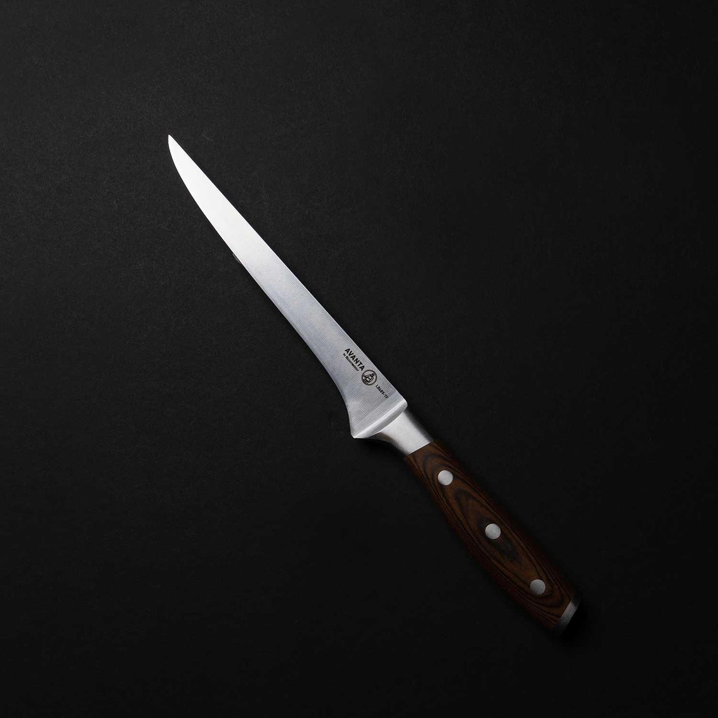 Barbecue like a Pro with knives designed with uncompromising attention to detail. The Avanta Pro BBQ Knife Set high quality blades are crafted from German X50 stainless steel for knives that are sharp, rust resistant and easy to maintain. Solid bolsters and full tang construction give the knives great balance and heft. Avanta knives are made with rounded, triple-rivet pakkawood handles for comfort and durability. The set consists of 5 BBQ knife essentials that come in a Preservation 5 Pocket Black Knife Bag.