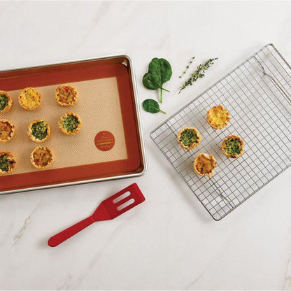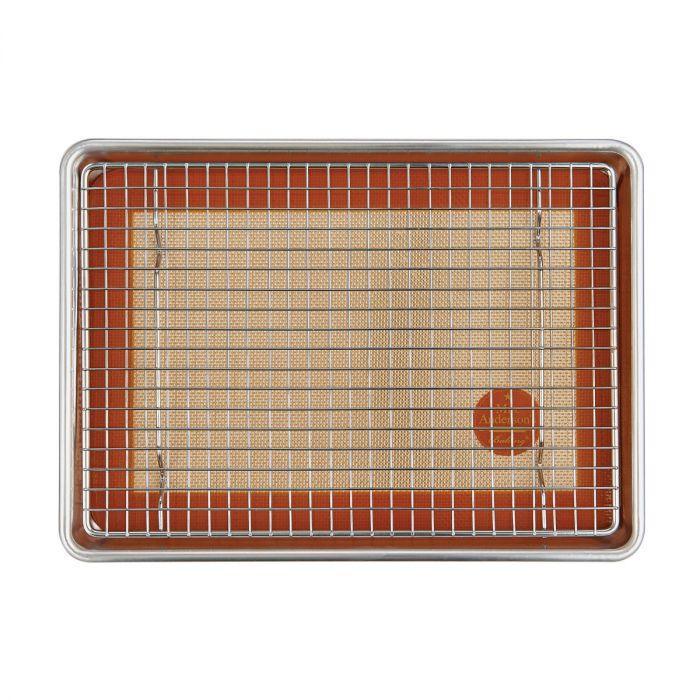 - Fits quarter-size baking pans and cookie sheets perfectly; cross-wire weave holds smaller items securely so they won't crumble or fall through