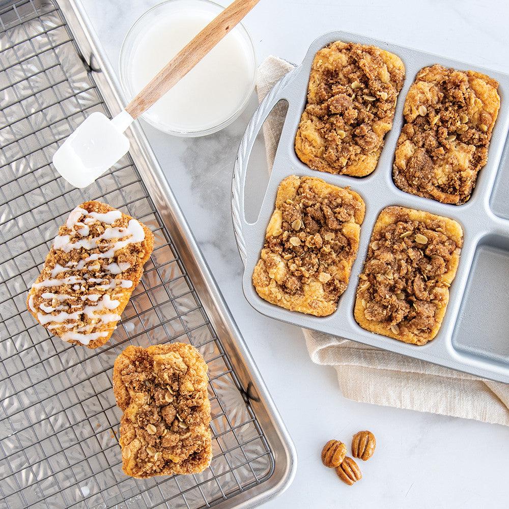The Nordic Ware Procast Mini Loaf Pan is perfect for baking with ease and efficiency. With the ability to bake up to 6 mini loaves at one time, this pan is ideal for those who love to bake in large batches or want to share their creations with friends and family. This pan is built to last and can withstand frequent use. The Mini Loaf Pan features a non-stick surface that makes it easy to release your baked goods without leaving residue behind. Plus, its compact size makes it easy to store in your kitchen.
