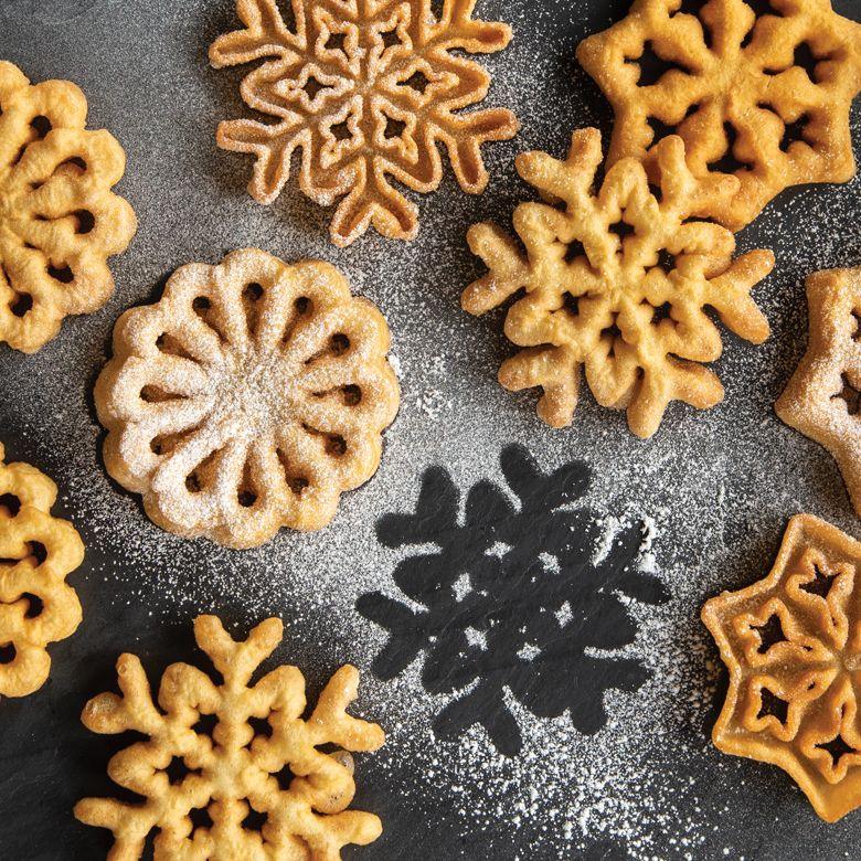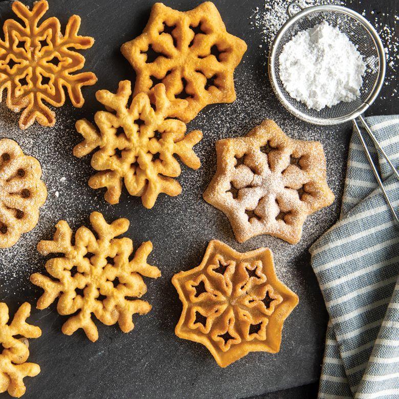 Make delicious, deep-fried, melt-in-your-mouth Scandinavian cookies and pastry shells. Includes an interchangeable handle that makes two shapes at once plus 6 unique cast aluminum irons: 3 new Rosette irons and 3 Bundt-inspired Timbale pastry irons.