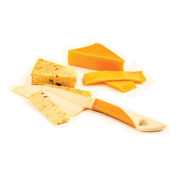 Revolutionary material and design keeps cheese on plate, not on knife.