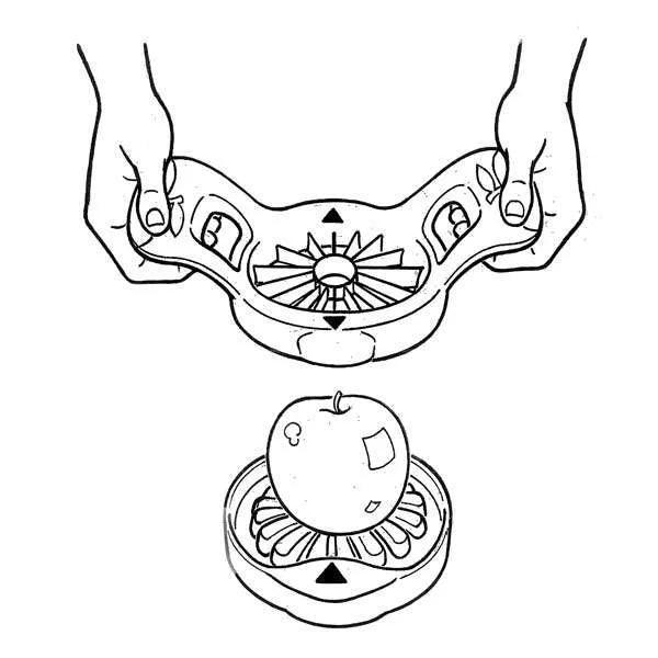 Center fruit on push plate. Line up arrow on slicer with arrow on push plate. Center over core, keep hands away from blades, and push down in one easy motion.